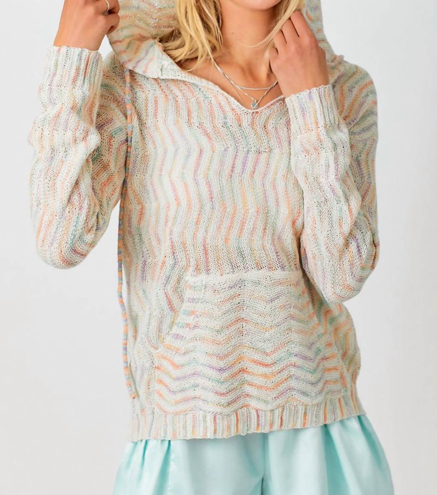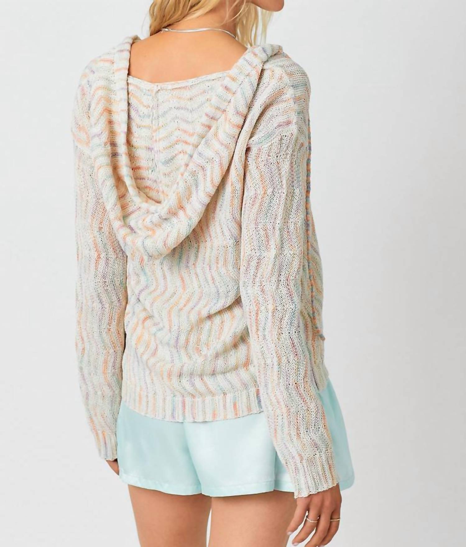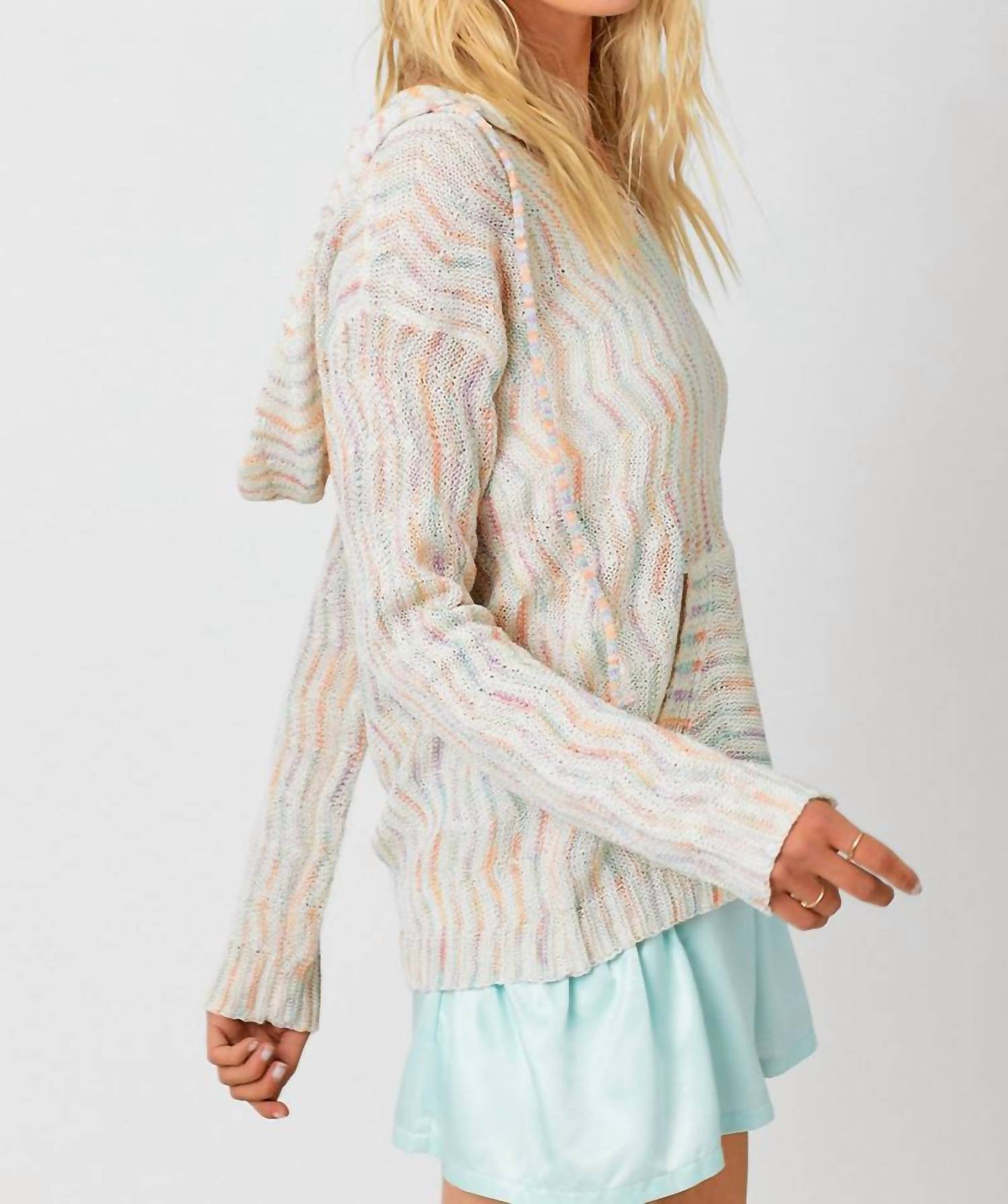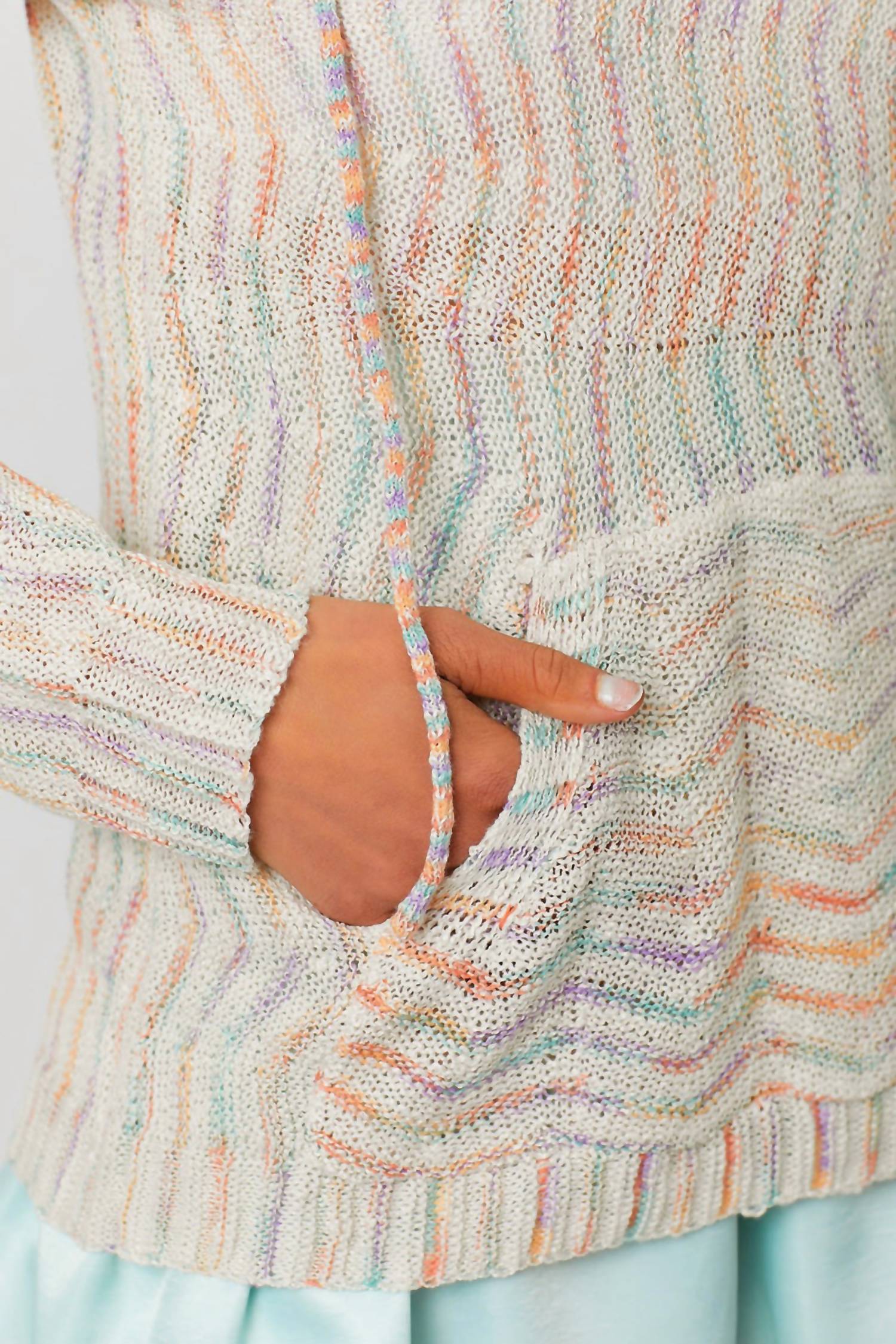 Whether you're running around town or lounging at home, this sweatshirt works for both. Meet the Beach Love Sweater by Mystree, a lightweight and soft addition to your summer wardrobe in a delightful oatmeal hue. With its long sleeves and playful chevron print, this sweater is perfect for layering over your bikini. Composition: 50% Acrylic, 50% Polyester. Closure: Pull On.
