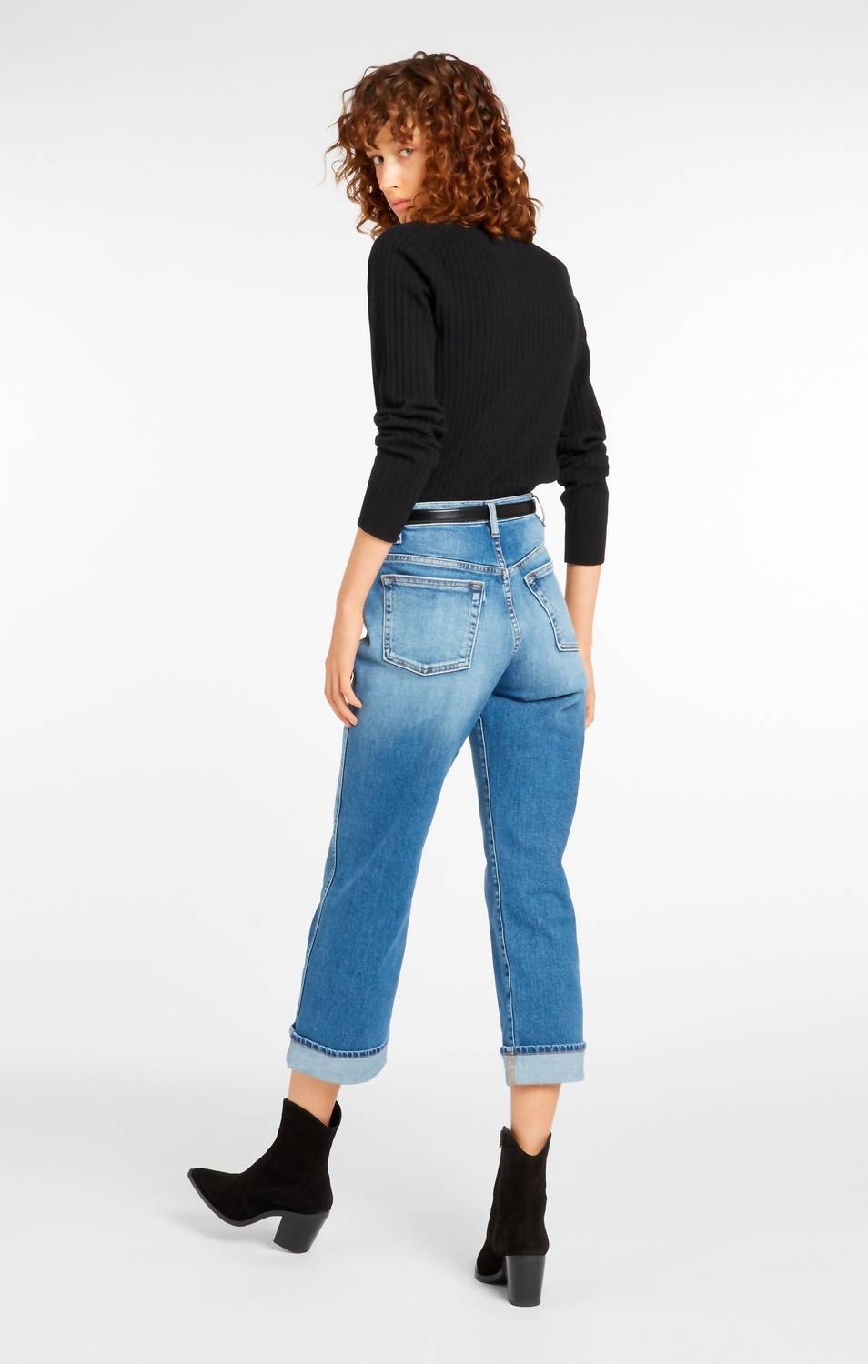 These must-have jeans are fit to perfection. Introducing the Dark Barrel Claudia Extreme Pant by 3x1, a masterclass in vintage-inspired style with a modern twist. These denim pants feature a high rise of 12 inches and a crop length with a 27-inch inseam, delivering a flattering straight-leg silhouette. Crafted from a cotton blend composition of 98% cotton and 2% elastane, they offer comfort and a classic fit. Closure: Button closure with a zip fly. Care: Machine wash. Ideal for summer vacations, these jeans combine Y2K trends with everyday elegance.