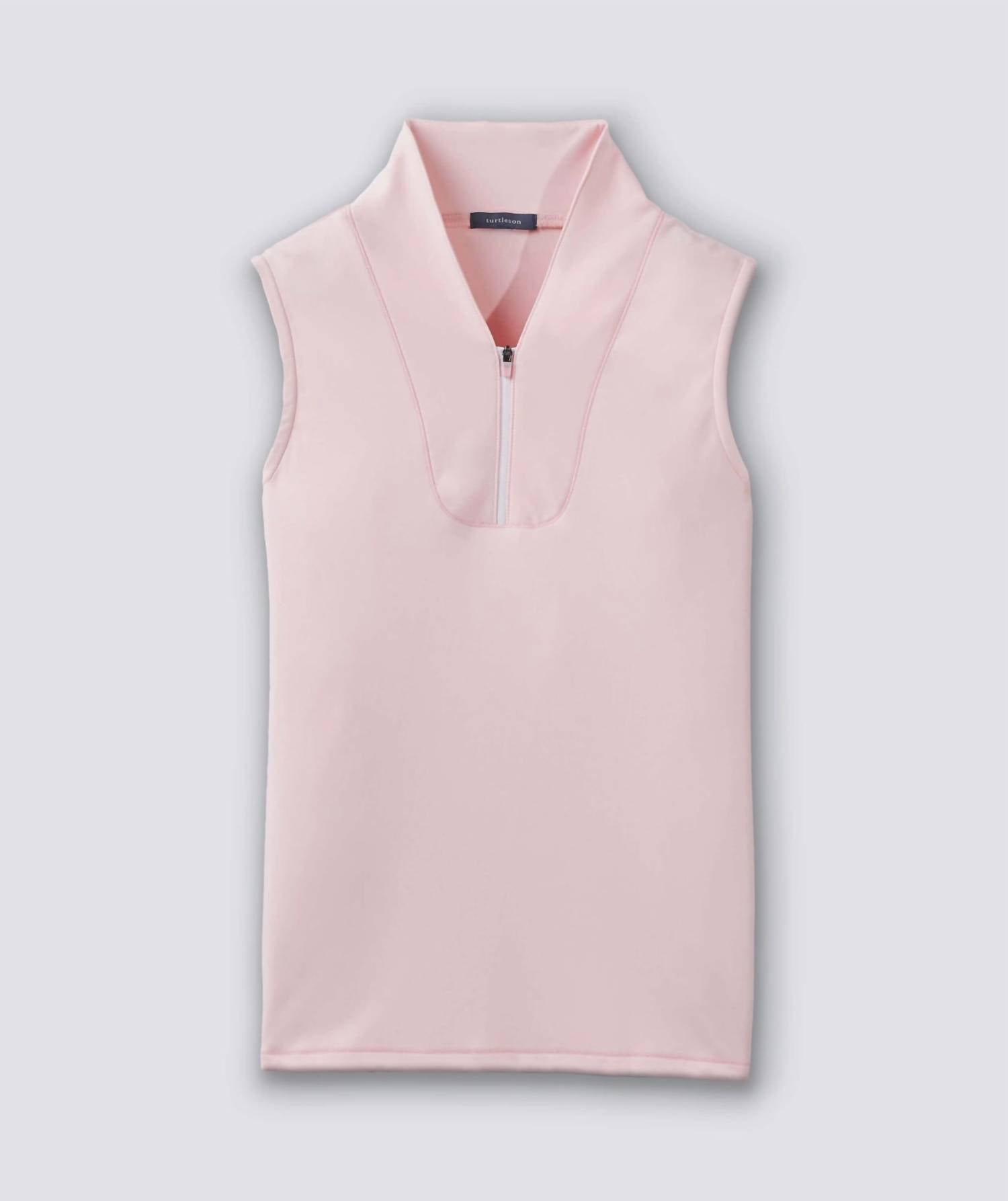 Pair this with your favorite jeans and slides for your next girls night out. The Breeze Sleeveless Top by Turtleson in Retro Pink offers a sleek, modern aesthetic ideal for an active lifestyle. This sleeveless blouse features a stand-up collar for sun protection and a v-neckline for a touch of elegance. Crafted with four-way stretch and moisture-wicking fabric, it ensures flexibility and dryness throughout wear. Closure: Adjustable zip closure. Care: Hand wash.