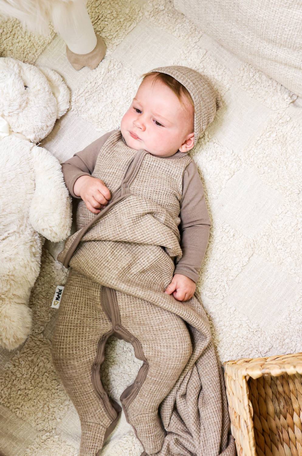 Wrap your little one in warmth with the Baby Waffle Snap Footie by Maniere, presented in a cozy taupe hue. This footie features long sleeves and a snap closure, with a textured waffle knit front and a stretch cotton back for ultimate comfort. Composition: 60% Cotton, 25% Rayon, 15% Spandex. Care: Delicate cold wash with similar colors, tumble dry low. Perfect for the minimalist fall season, this footie serves as an excellent baby shower gift.