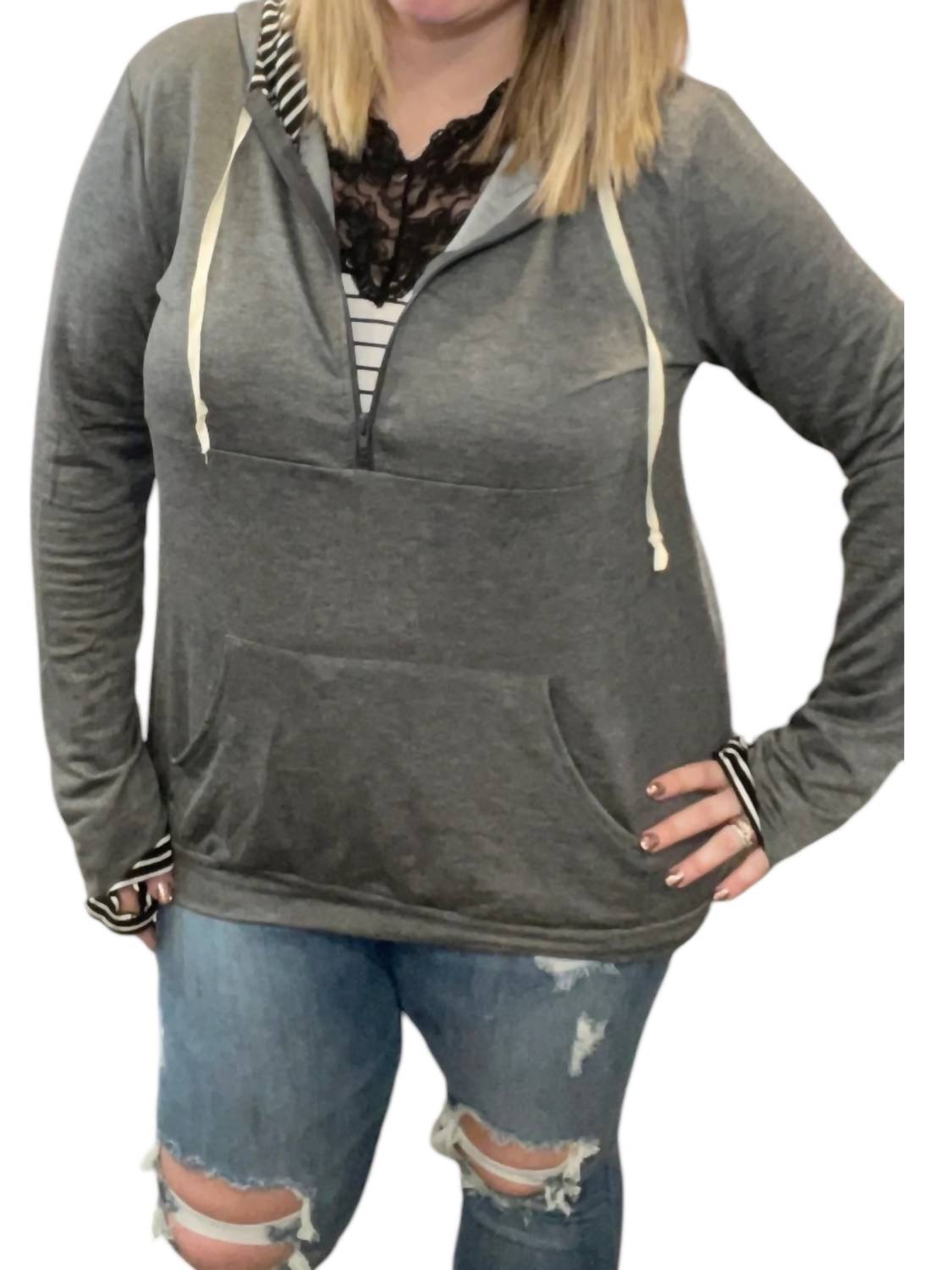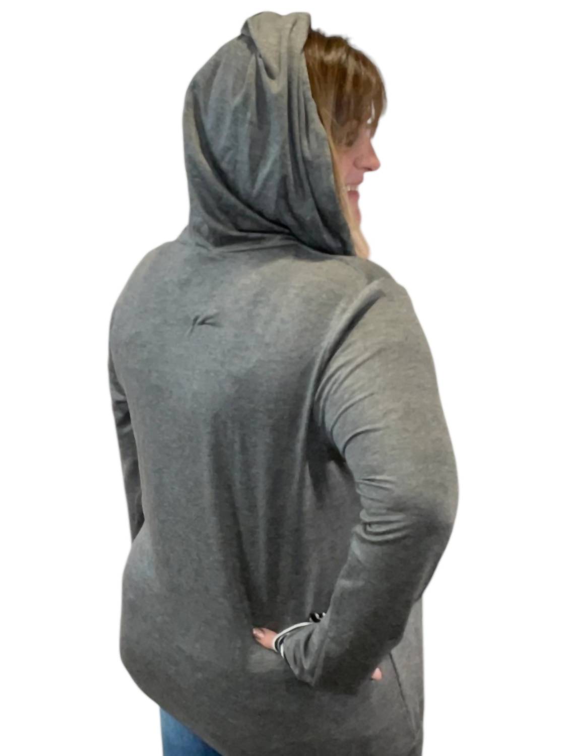 Attached hood. Long sleeves. Partial front zipper. Kangaroo pocket. 100% Cotton. Machine wash cold.