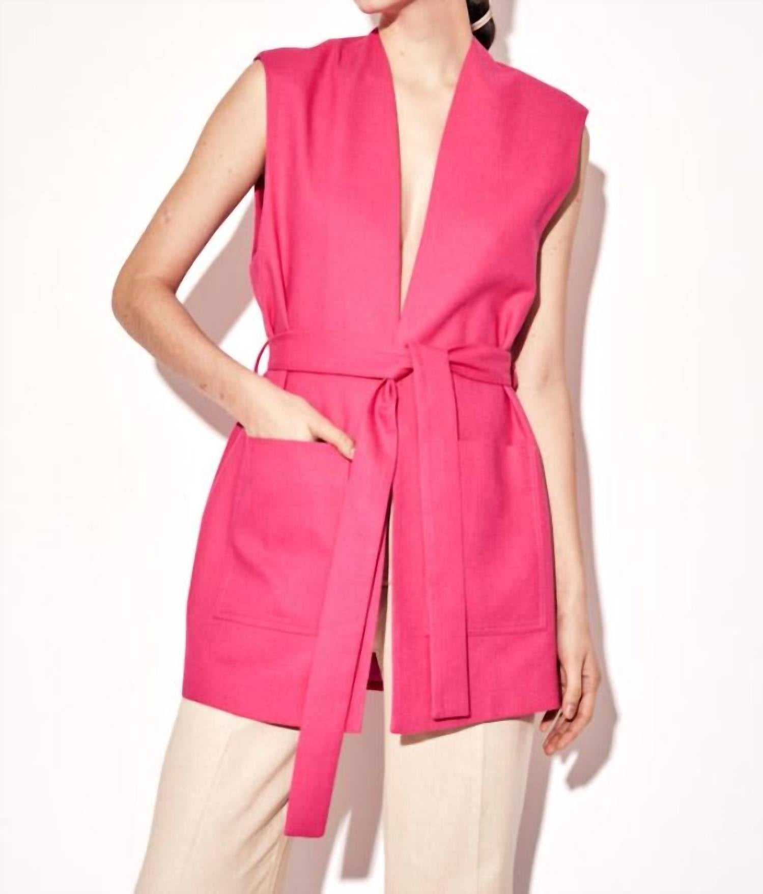 Linen Vest with a belt. True to size. 55% Linen, 45% Rayon