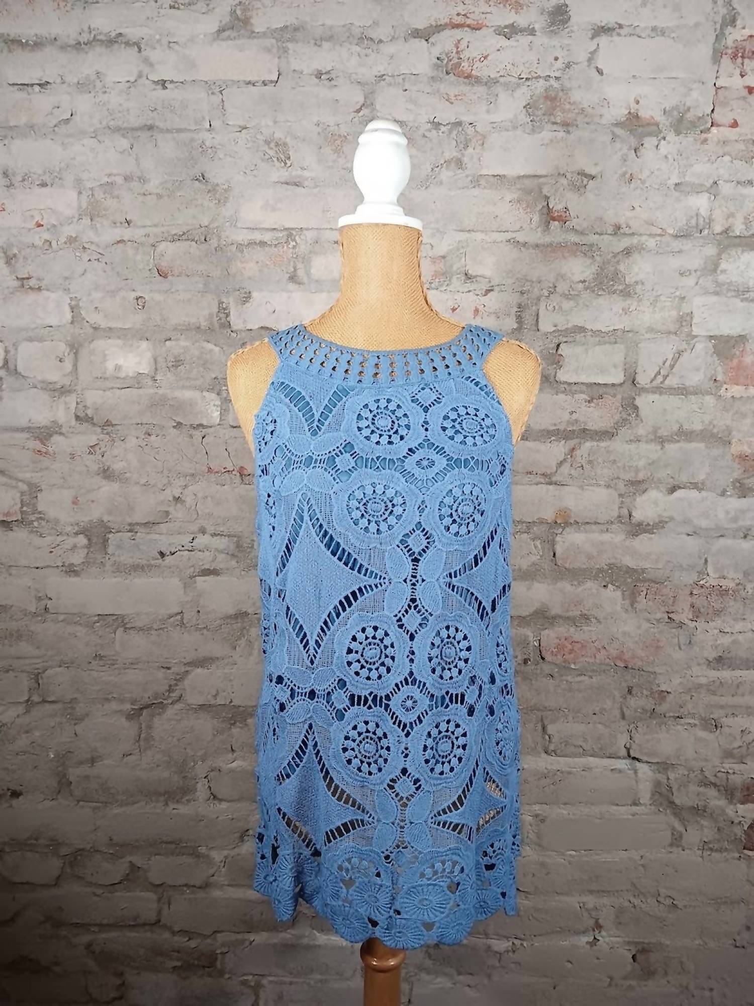 This classic tank top is perfect for layering and cute enough to wear on its own. Elevate your vacation wardrobe with the Women's Lace Tank by Keren Hart, a boho chic piece in a stunning blue hue. This sleeveless tank features a crewneck design with a playful, textured pattern. With a 100% cotton shell and 100% polyester lining, this tank promises both comfort and style. Closure: Pull-on. Ideal for spring days, it's the perfect pick for casual outings.