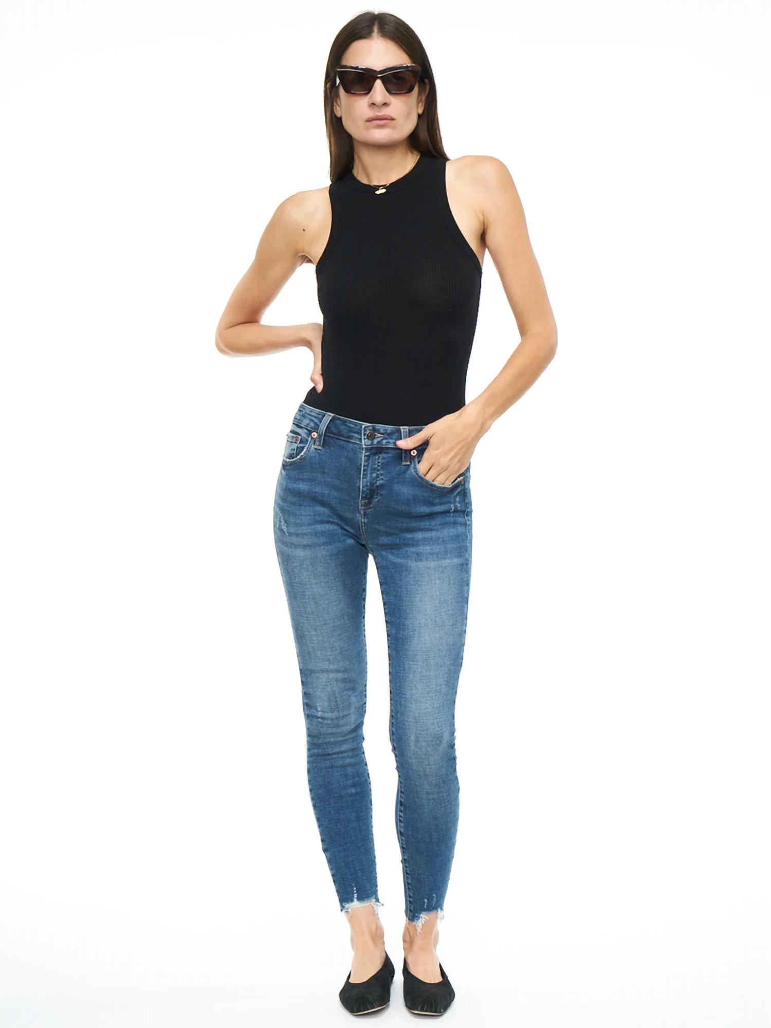 Everyone needs a good pair of skinny jeans and this is a style you'll keep reaching for no matter the season. Introducing the Audrey Skinny Jeans by PISTOLA, a stylish addition to your wardrobe in the London Mist color. These women's jeans are crafted from medium wash denim with a solid pattern and feature a mid-rise waist and flattering skinny leg style. Designed with convenience in mind, they include pockets and a zip closure. Care instructions include machine wash for easy maintenance, making them perfect for spring festivals and Y2K-inspired looks.
