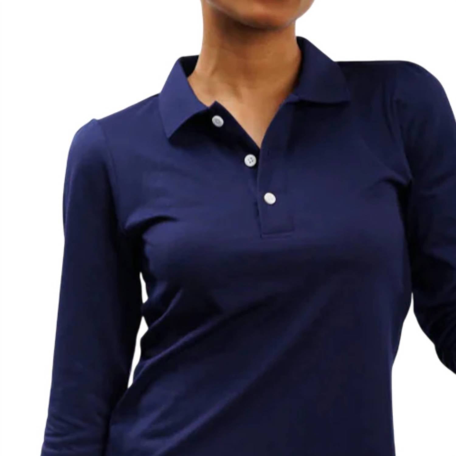 The perfect long sleeve tee that goes with just about anything. Elevate your wardrobe with the Jean Long Sleeve Polo Top by SMITH & QUINN, featuring a classic long sleeve design and a delicate puff sleeve detail. Crafted from our cotton pique fabric, this versatile polo is designed for year-round wear. Its button closure and polo placket with collar provide a polished look. Easy to care for, it is machine washable, perfect for athleisure and vacation occasions in a stylish navy hue.