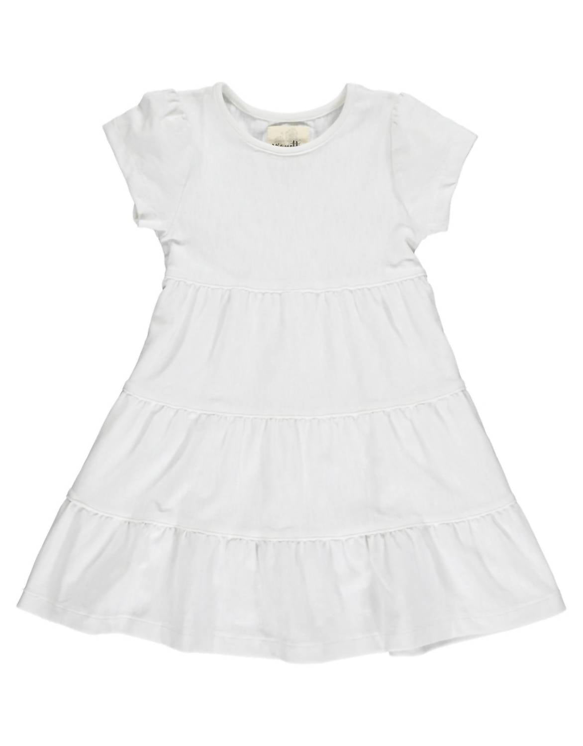 Introducing the Kids Tiered Iona Dress by VIGNETTE, a charming piece in a solid white hue designed for little girls. This dress features a tiered design that adds playful volume, perfect for casual outings. Originating from India, the dress offers easy care with machine wash and tumble dry instructions, making it as practical as it is stylish. A delightful choice for any young fashionista's wardrobe.
