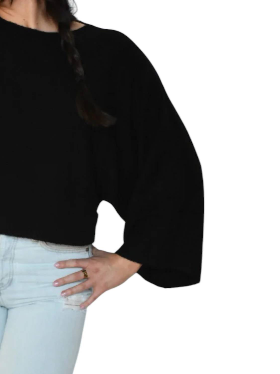 Crew neck neckline. Wide sleeves. Split hem. Buttery soft. 55% acrylic 28% nylon 10% wool.