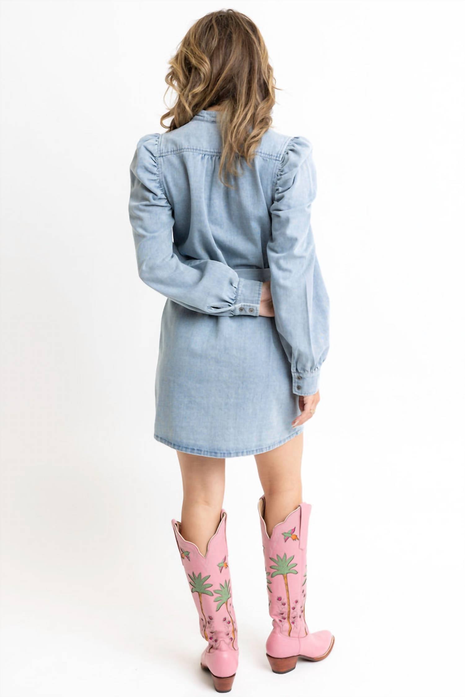 Cute and comfortable, this long sleeve dress has it all. This dress showcases long sleeves with button details and has a collared neckline, offering a classic yet modern look. Made from 100% Cotton, this blue dress features functioning front buttons and an adjustable belt for a tailored fit. Please note, the fabric is non-stretch and non-sheer. Model is 5'7" and is wearing a size small. True to size fit.