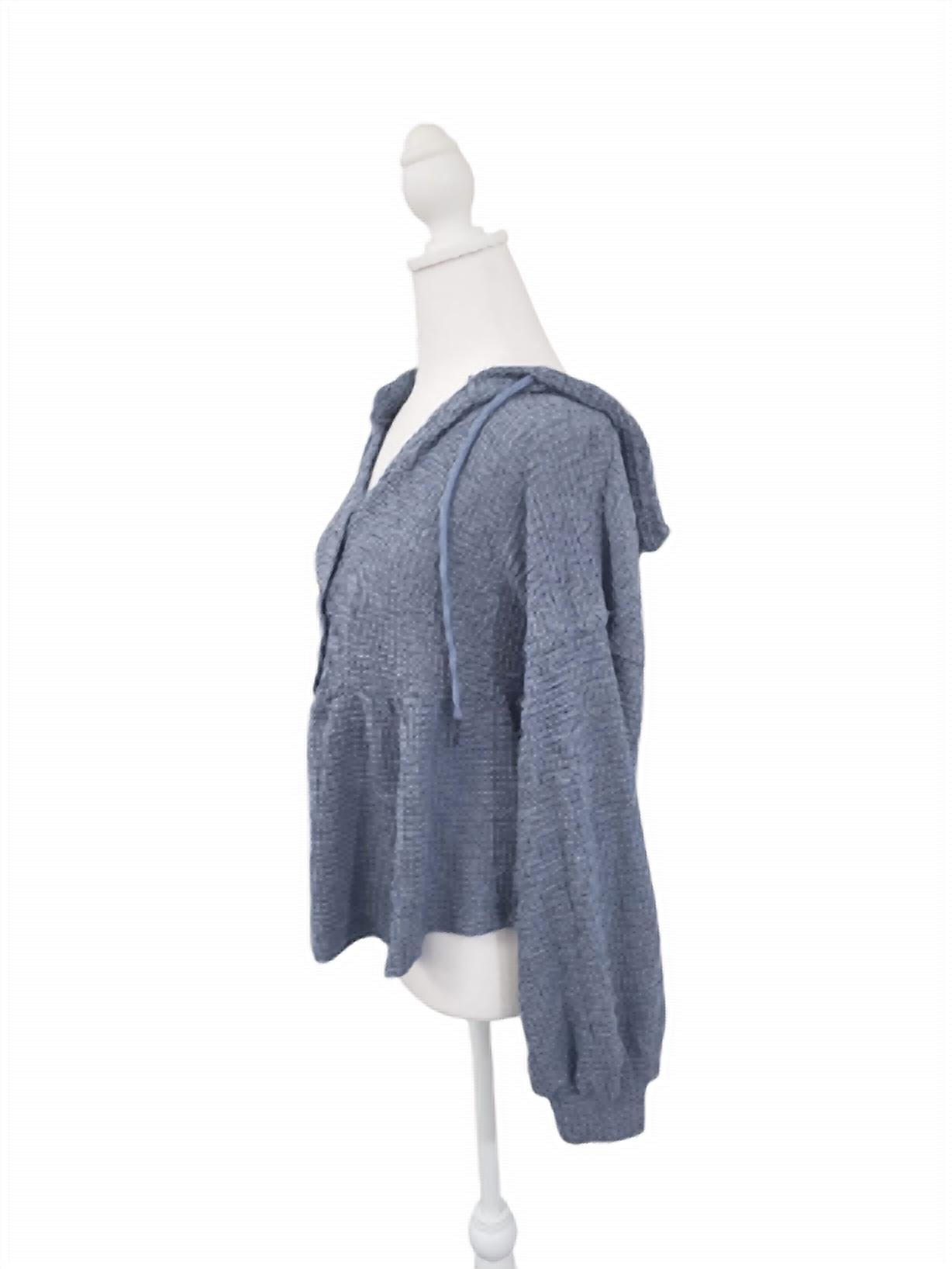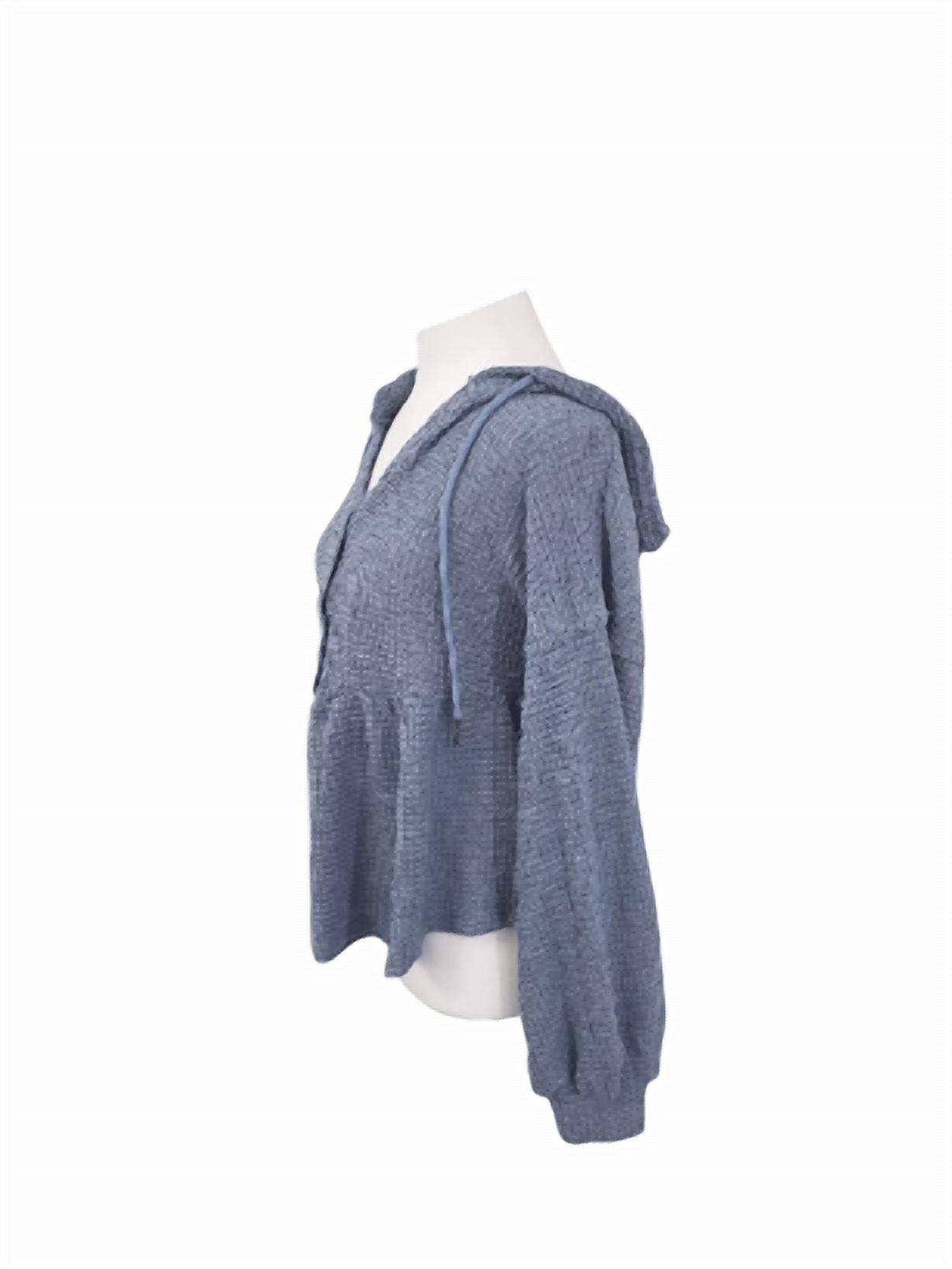 Cooler temps call for layering and we love this adorable sweatshirt for all the obvious reasons. Introducing the Women's Lightweight Thermal Hoodie by LTX Sportswear, crafted in slate blue for a chic and cozy style. This textured, relaxed-fit hoodie features long sleeves and a half button-up front, perfect for a laid-back yet stylish look. With its modern silhouette and hooded neckline, it's designed for both layering and standalone wear, offering versatility and ease of movement. Closure: Button closure. Ideal for spring streetwear occasions or vacations.