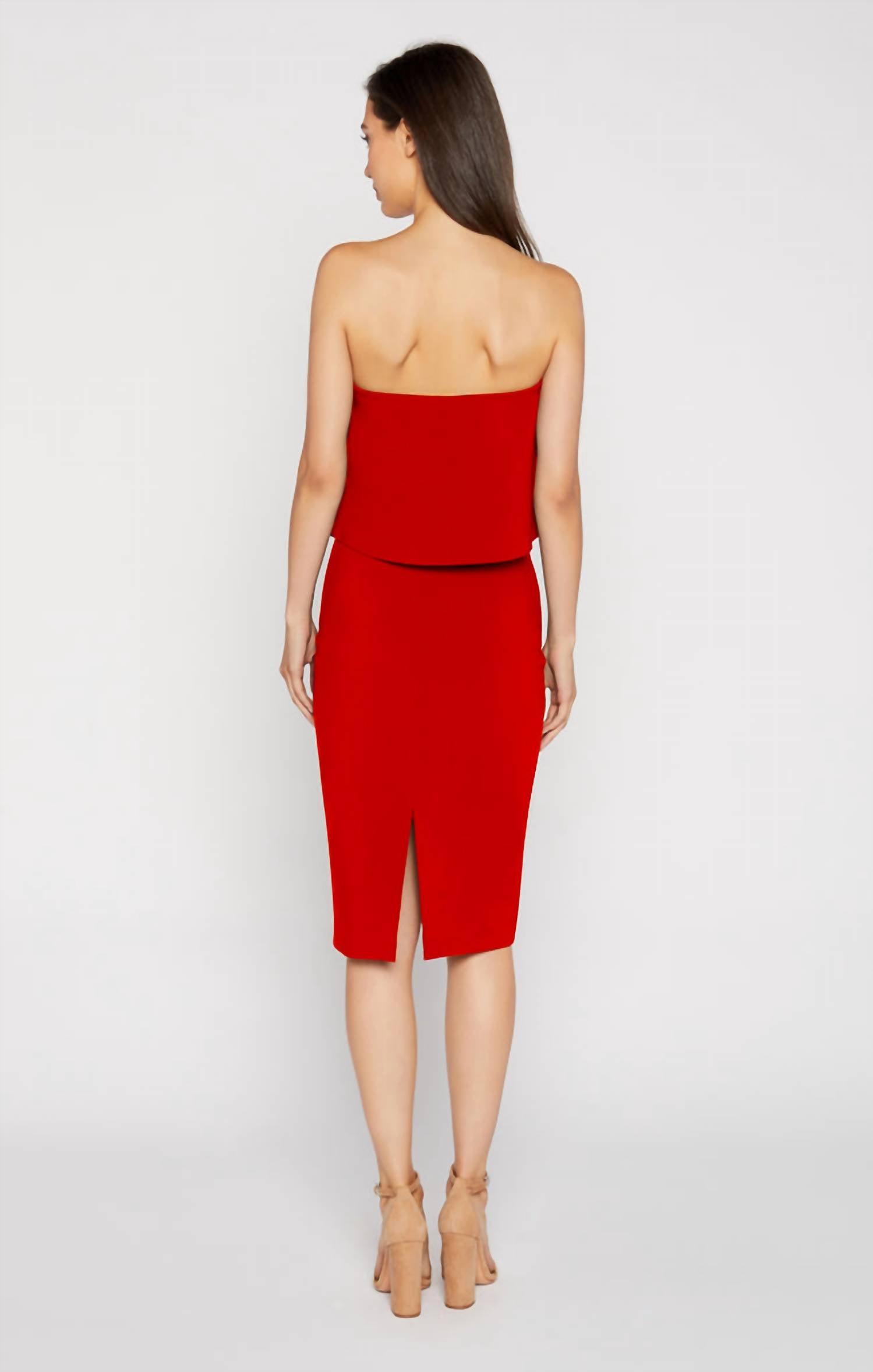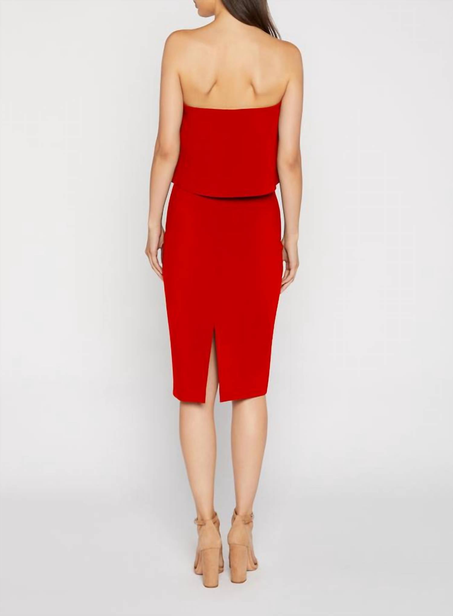 Comfortable and cute, this casual day dress has it all. FittedUnlinedBody-con silhouetteHidden zip at sideStrapless Drape overlay73% Polyester 22% Rayon 5% Spandex Dry Clean Only ImportedMeasurementsModel Measurements: Height 5'11", Bust 32", Waist 24", Hips 34.5"Model is wearing a size 2Length: 36in / 91.44cm, from top edgeMeasurements from size 4