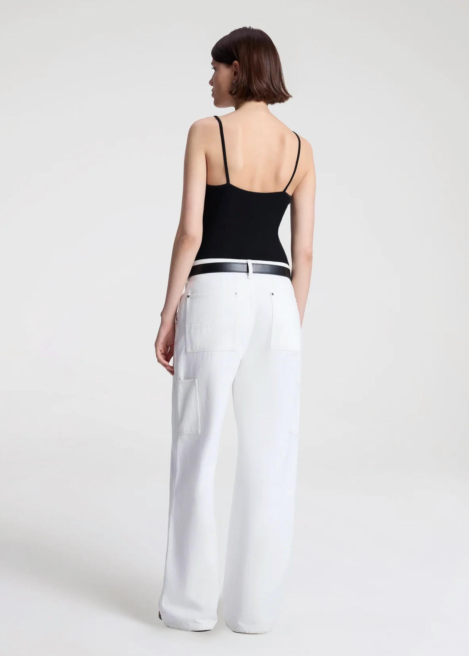 Throw this on with your favorite blazer for a more polished look. Introducing the Alba V-neck Top by A.L.C., a stunning piece in classic black designed for minimalist elegance. With spaghetti straps and a plunging V-neckline, this form-fitting camisole is crafted from 100% Italian Silk and trimmed with 100% Polyester lace. The top features a pull-on closure and is expertly cut to a length of 22.5 inches, providing a chic silhouette. Care for this luxurious garment with dry cleaning to maintain its sophisticated allure.