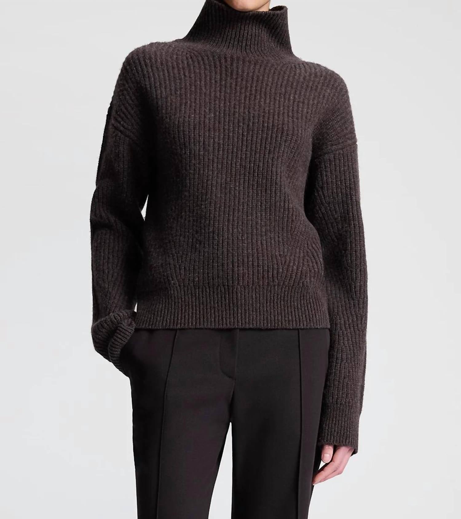The ultimate go-to sweater, expertly crafted to provide the perfect combination of warmth and style. Its classic design and soft fabric make it a must-have addition to your wardrobe. Introducing the Jean Wool Turtleneck Sweater by A.L.C., a sophisticated piece in Dark Smoke perfect for the fall season. Crafted from 100% superfine lambswool, this long-sleeve sweater features a ribbed texture with dropped shoulders for a relaxed fit. Originating from a seamless design, it has a classic turtleneck neckline and is designed for pull-on convenience. For care, dry clean only to maintain its luxurious finish.