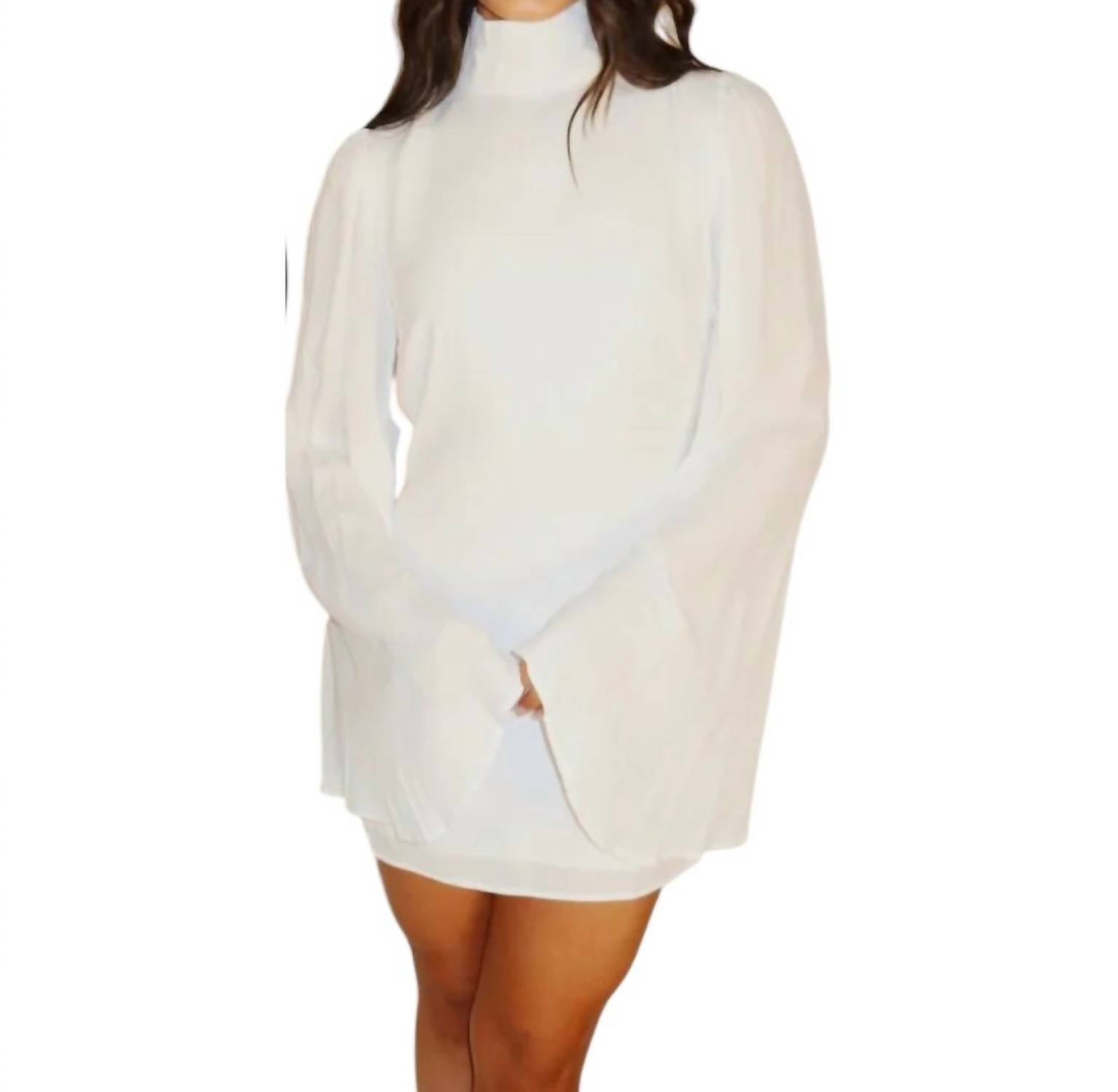 Act Pretty - Chic Mock Neck Flared Sleeve Mini Dress