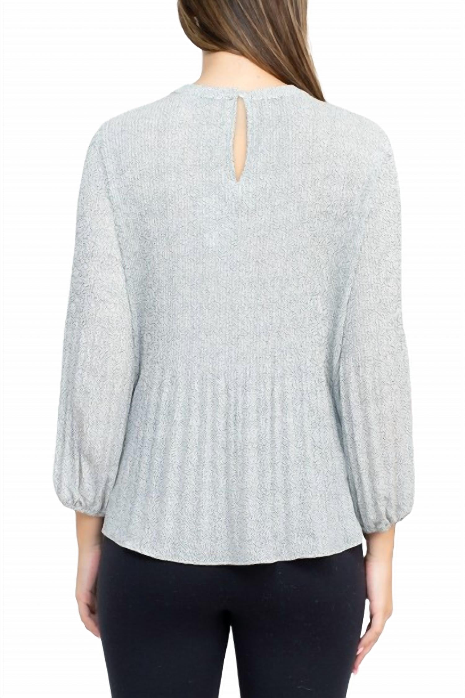 Pair this with your favorite jeans and slides for your next girls night out. Introducing the Adrianna Papell Ruched Waist Woven Top, a chic and versatile choice for both career and casual settings. This women's blouse features a classic crew neckline and stylish three-quarter sleeves, offering timeless elegance in its Ivory Black Micro Dot pattern. Crafted from a comfortable blend of polyester and elastane, it includes a button closure and a sophisticated keyhole back detail. The ruched waist creates a flattering silhouette, and it is conveniently machine washable with line dry instructions, making it a must-have addition to your summer wardrobe.