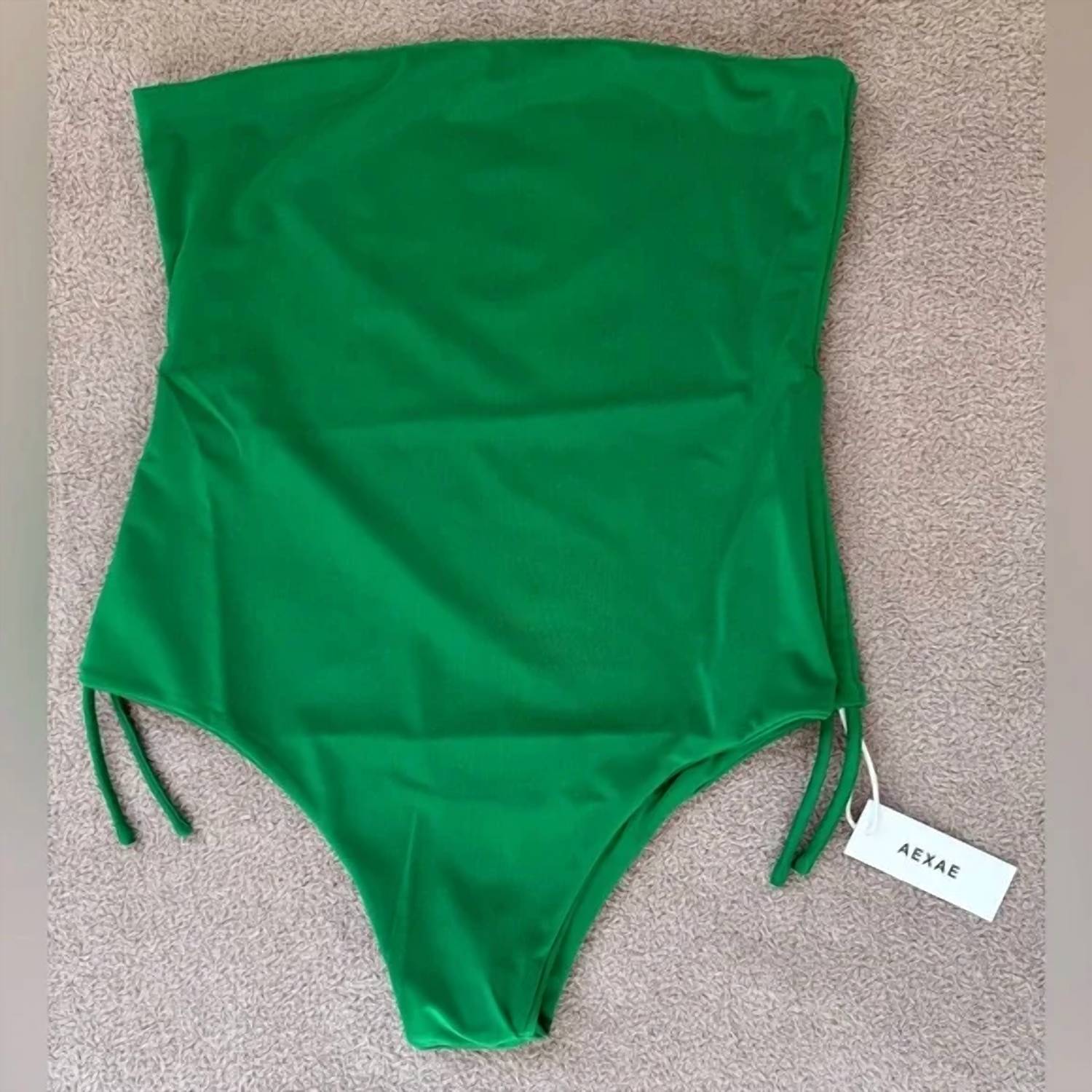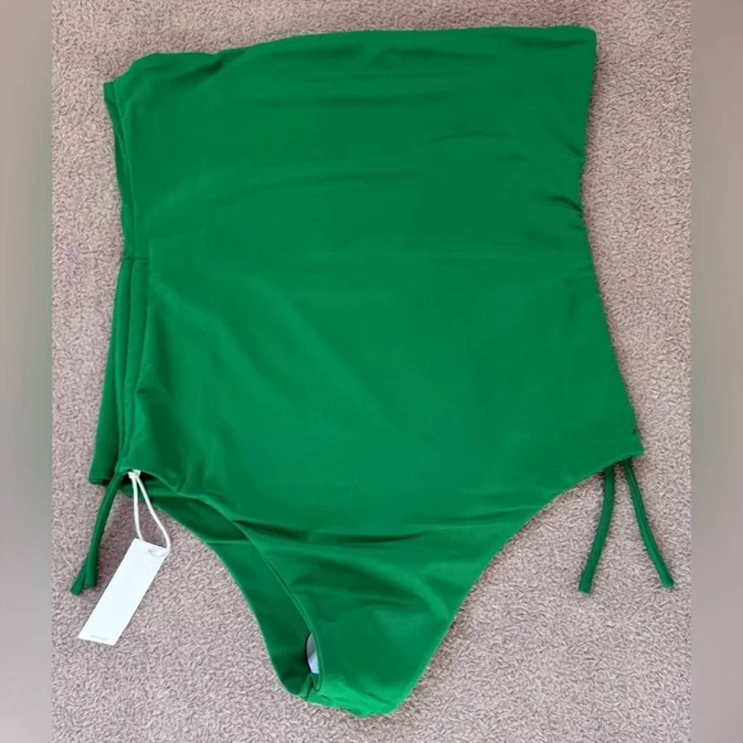 A one piece so chic you could even wear it as a bodysuit with your favorite pair of jeans. Embrace summer elegance with the Gathered One-piece Swimsuit by AEXAE, crafted for women who love a classic look in chic green. Made from 80% recycled polyester and 20% elastane yarn, this solid, strapless one-piece boasts ruched drawstring sides for an adjustable fit and timeless appeal. Designed for a day at the beach or pool, it features classic coverage and a bikini-style bottom to flatter your silhouette effortlessly.