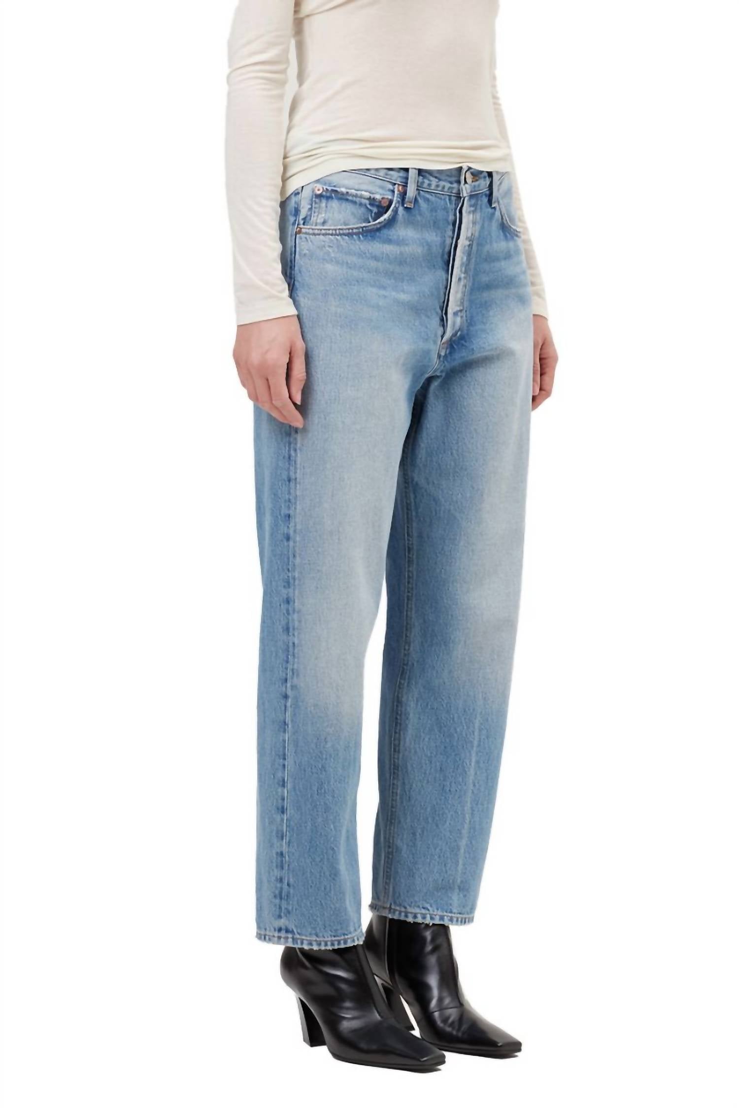 We especially love this cropped jean with a cute pair of slides or sandals. Discover the AGOLDE 90's Crop Loose Straight Jeans in a chic Vault color, offering a relaxed straight leg silhouette perfect for a laid-back, vintage-inspired look. Crafted from 100% regenerative cotton, these jeans promise all-day comfort with a mid-rise fit that complements any wardrobe. Closure: Zip closure. Care: Machine wash and tumble dry.