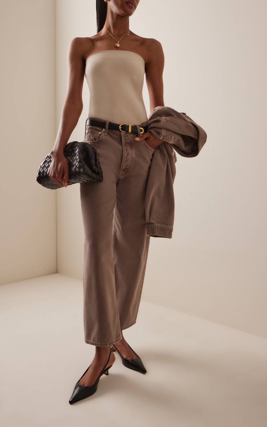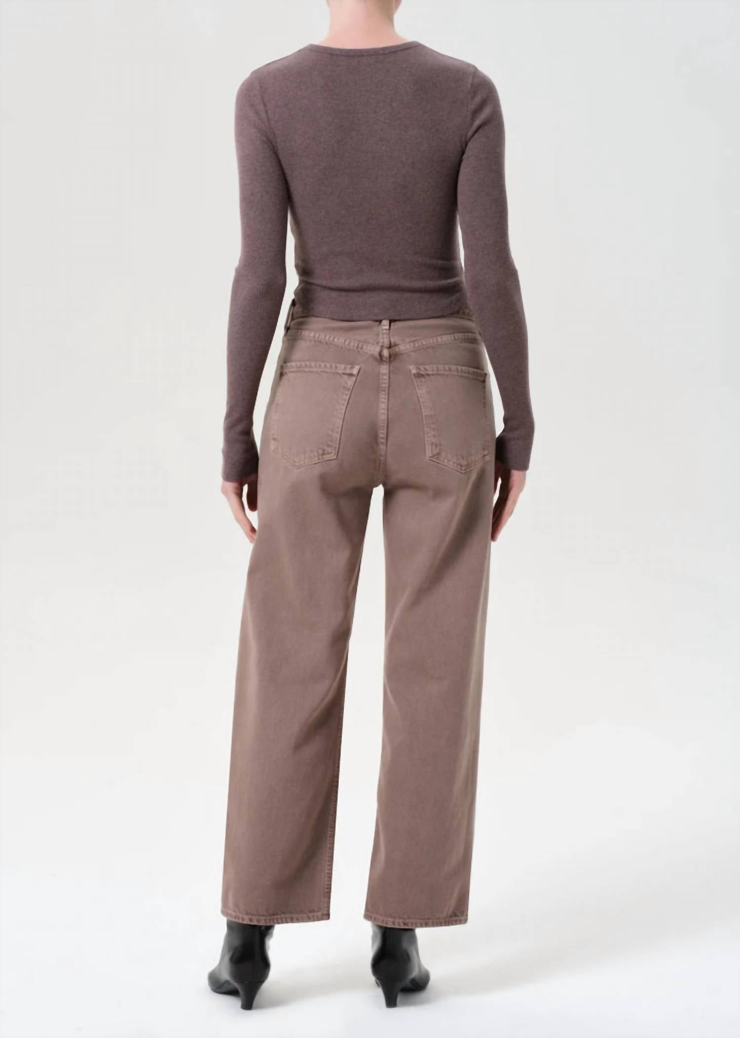 Fit to perfection, we love these high-waist jeans and you will too. Introducing the High-rise Ren Jean by AGOLDE, perfect for casual, off-duty days in a chic Ceramic shade. These jeans feature a classic fit with a high-rise waist and wide, cropped legs, crafted from solid denim for a flattering silhouette. They include essential pockets and utilize a button closure for added convenience. Care instructions suggest a machine wash and tumble dry, ensuring effortless maintenance for your wardrobe staple.