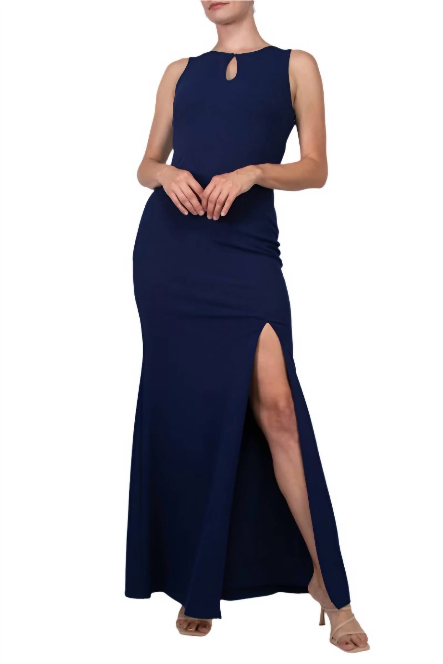 A maxi dress that is just as cute as it is comfortable. Step into elegance with the AIDAN MATTOX Beaded Sequin Rhinestone Back Stretch Crepe Dress, an exquisite choice for evening events in a captivating navy hue. This sleeveless gown is crafted from luxurious stretch crepe, comprising 95% polyester and 5% spandex, and features a sleek mermaid silhouette with a sophisticated crewneck. Designed in a maxi length, the dress is adorned with dazzling beading, shimmering sequins, and rhinestone details, elegantly showcasing your style at any formal occasion. The side zipper closure ensures a seamless fit, and it's recommended to dry clean this stunning piece for optimal care.