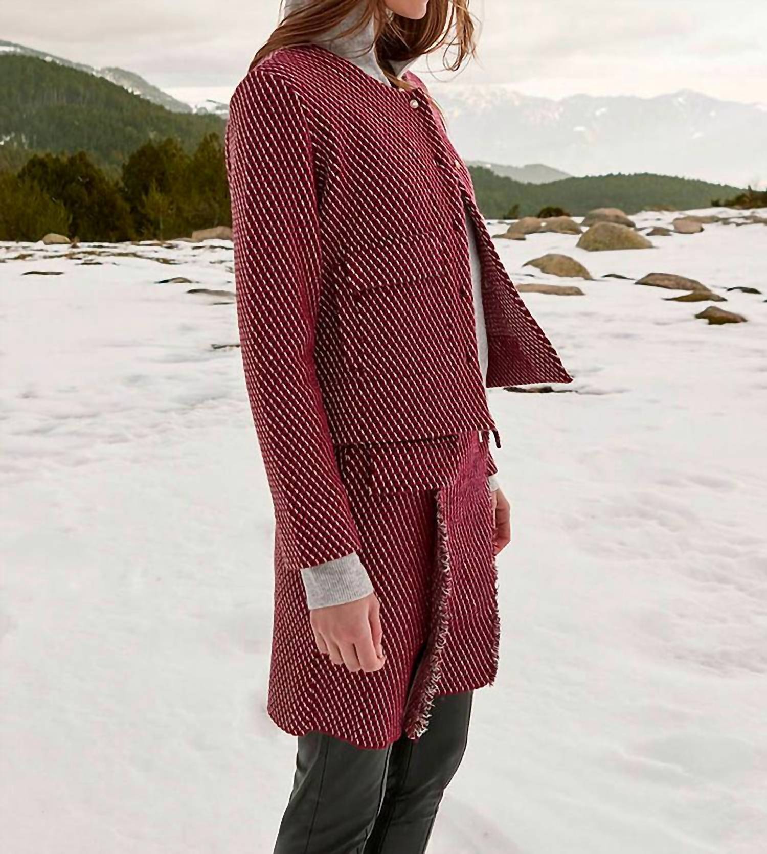 Cute, casual, and comfortable. This jacket is a must have. Introducing the Aldo Martins Condor Round Neck Jacket, a stylish women's piece in a vibrant maroon perfect for spring streetwear. This jacket features a crewneck and long sleeves with a button closure and pockets for added convenience. Composition: 62% Viscose, 34% Acrylic, 3% Polyamide, 1% Elastane. Care: Hand wash in cold water with mild soap, gentle spin cycle, iron on low heat, dry clean only; do not bleach or tumble dry.
