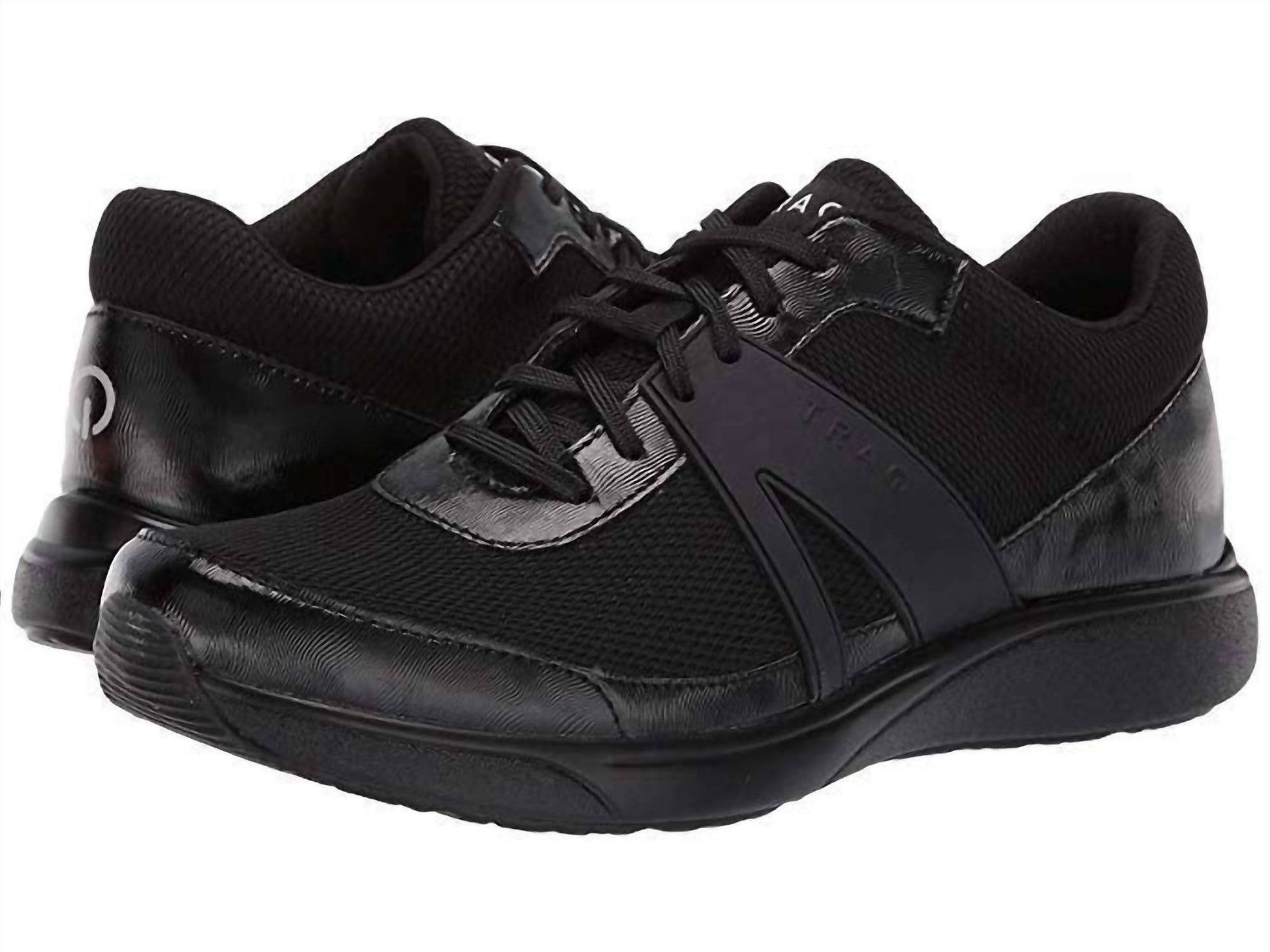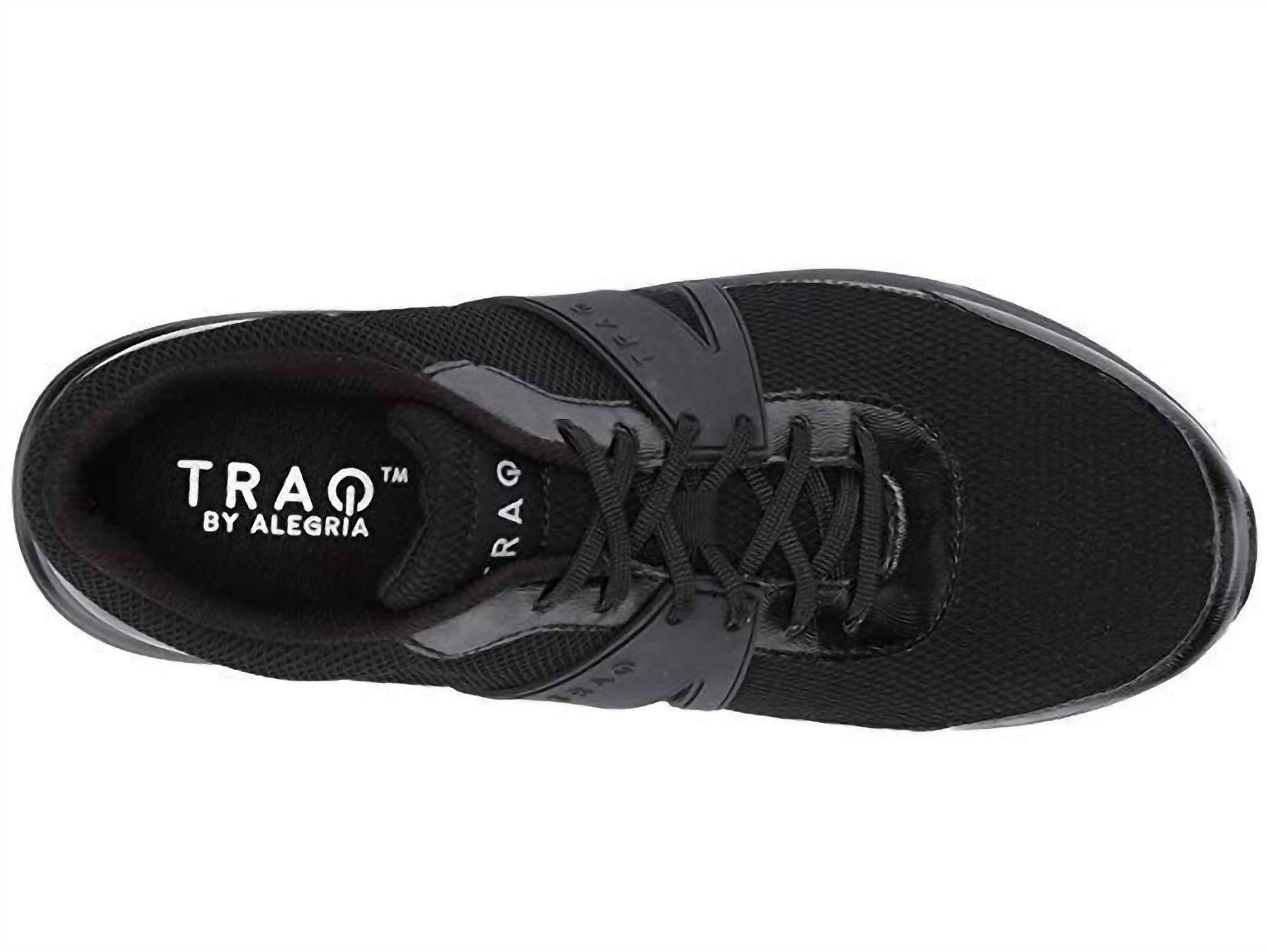 When fashion meets function. Introducing the Women's Qarma Swell Running Shoe by Alegria, a sleek black sneaker designed for fitness enthusiasts. Featuring a durable mesh upper, this shoe offers athleisure style with a focus on performance. Its standout feature is the embedded smart Q-Chip pedometer, accurately tracking steps without the need for charging. Simply connect to the Alegria TRAQ™ app via Bluetooth® to set goals and track your progress, creating a personalized experience without needing GPS. Ideal for fall workouts, it allows seamless connectivity and social engagement with your fitness community.