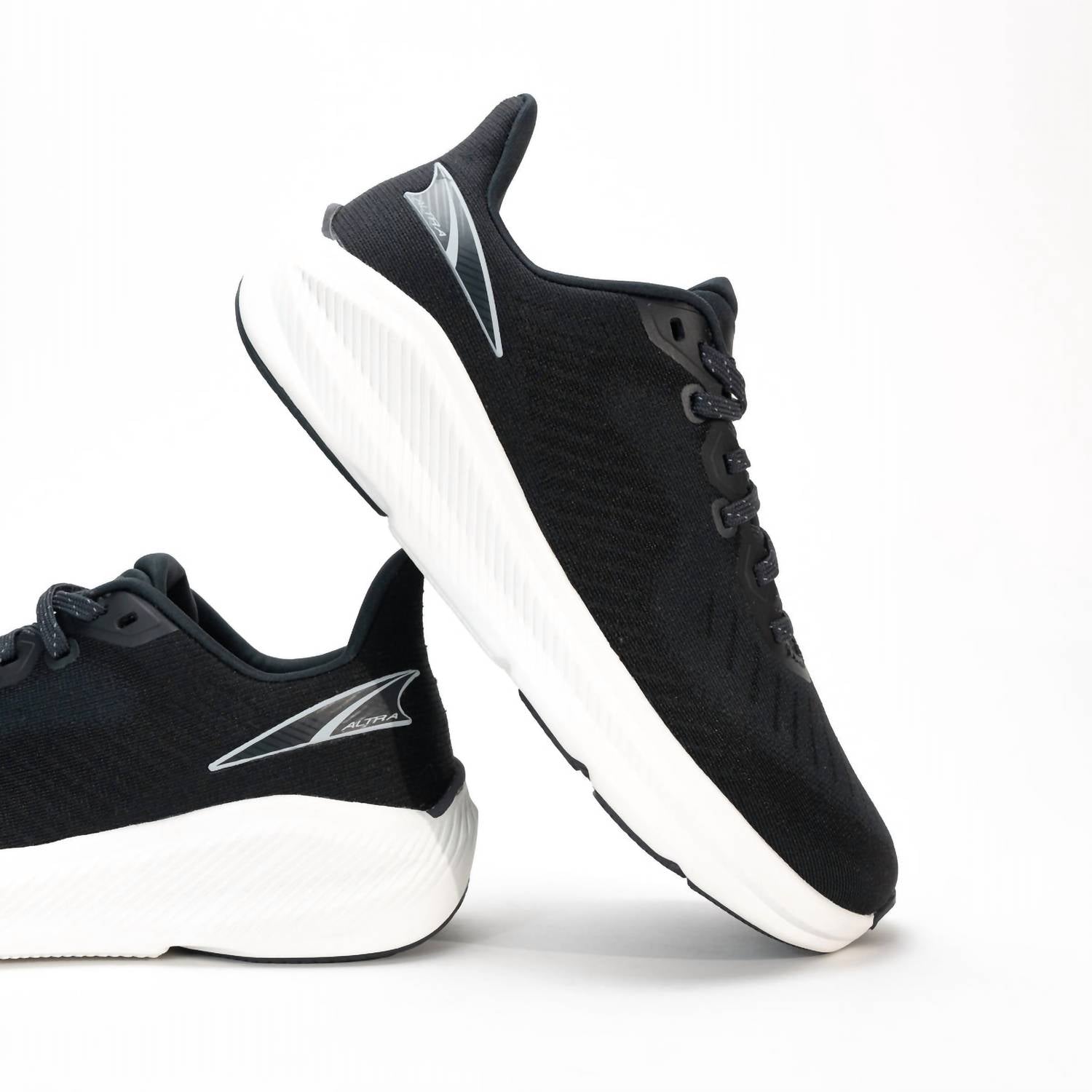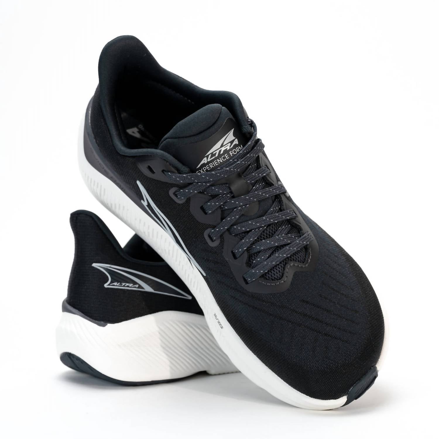 When fashion meets function. The Women's Experience Form by ALTRA is the perfect blend of lightweight support and natural comfort, making it ideal for road running and daily workouts. With a 4mm drop and GuideRailâ„¢ technology, it offers gentle stability and efficient toe-offs. The compression-molded EVA midsole ensures responsive cushioning, while the FootShapeâ„¢ fit allows for natural toe splay and comfort. Designed with a flat heel and round toe, this athletic shoe showcases a black athleisure trend, perfect for fitness enthusiasts during summer workouts.