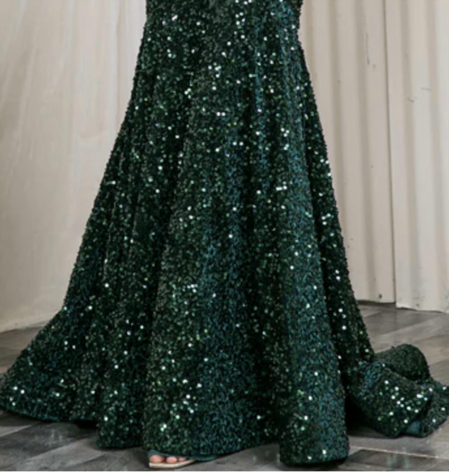 Just add a cute little clutch and a matching heel for the perfect event look. Introducing the London Sequin Gown by Amelia Couture, a stunning choice for any black-tie event. This strapless gown, in an eye-catching emerald green, features a sweetheart neckline and a fitted bodice that seamlessly leads into a mermaid silhouette. Covered in textured sequins for maximum shimmer, it is designed to make every step unforgettable. A lace-up back detail ensures a perfect fit, while the floor-length skirt gracefully flows with a subtle mermaid hem. Origin: Not specified; Care instructions are not provided.