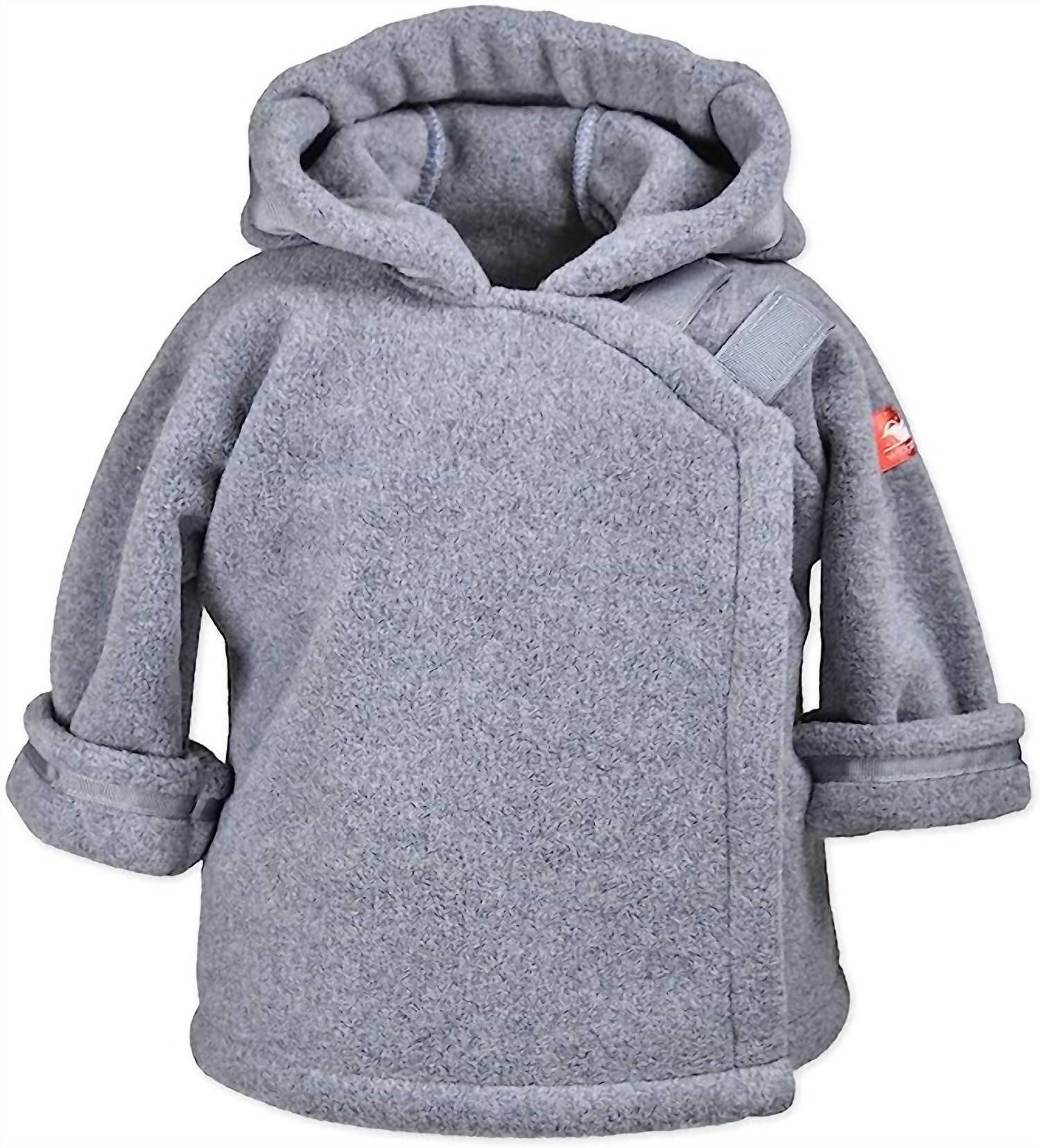 Discover the Widgeon's Girls' Warmplus Fleece Favorite Jacket by American Widgeon, designed for the discerning little traveler embracing a minimalist fall style. Made from 100% Polartec® Classic 300 Polyester from Malden Mills, it offers an exceptional weight-to-warmth ratio, ideal for keeping your child comfortable in Heather Gray color. Featuring a flap-over-flap design with a Velcro closure, this solid-pattern coat ensures frustration-free dressing, with grosgrain ribbon adjustability at the hood and rolled-up sleeves for growing room. Imported and practical, it is machine washable and can be tumble dried for easy care, making it a go-to outerwear piece.