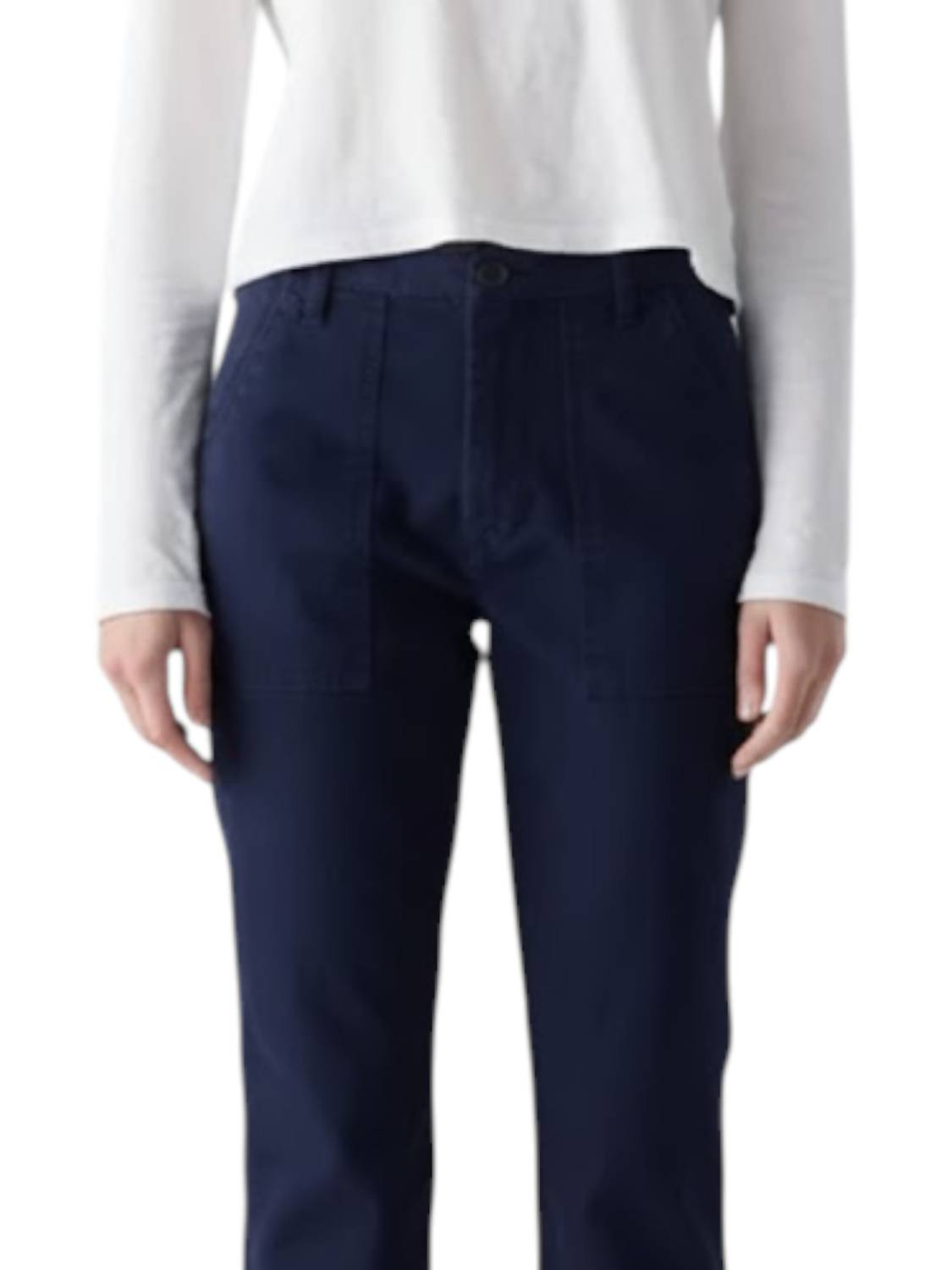 Discover the AMO Easy Army Trouser in AMO Twilight, a modern twist on a classic military design. These trousers showcase a mid-rise with a regular fit and a straight leg, featuring a slightly dropped crotch and a cropped length. Composition and style details include utilitarian front and back patch pockets and a raw cut hem, all enhanced by a button closure for easy wear. Crafted with a garment-dyed technique for a vintage feel, these trousers are machine washable and can be tumble dried. Inseam: 25.5", Front rise: 11.5".