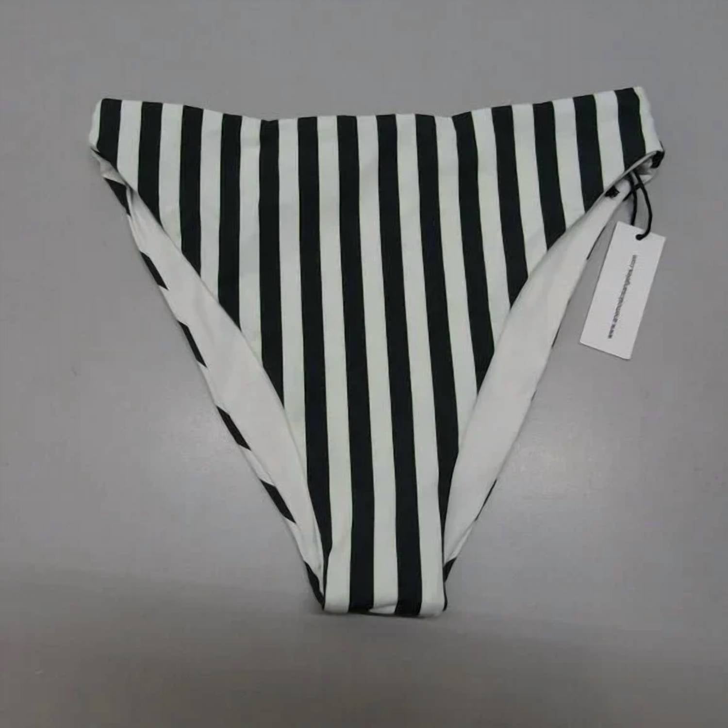 Dream of your next beach getaway in this cute little number. Pair with strappy sandals, a floppy hat, and an oversized tote to complete the perfect vacation look. Discover the ANEMOS Women's High-waisted Bikini Bottom in chic espresso stripes, perfect for beach days and resort escapes. This swim bottom features a high-waisted fit with a flattering striped design crafted from stretch swim fabric, providing both style and comfort. Lined for support, it complements any personalized swim look by pairing with a matching top or mixing with other styles. For care, hand wash and line dry to maintain its preppy appeal.