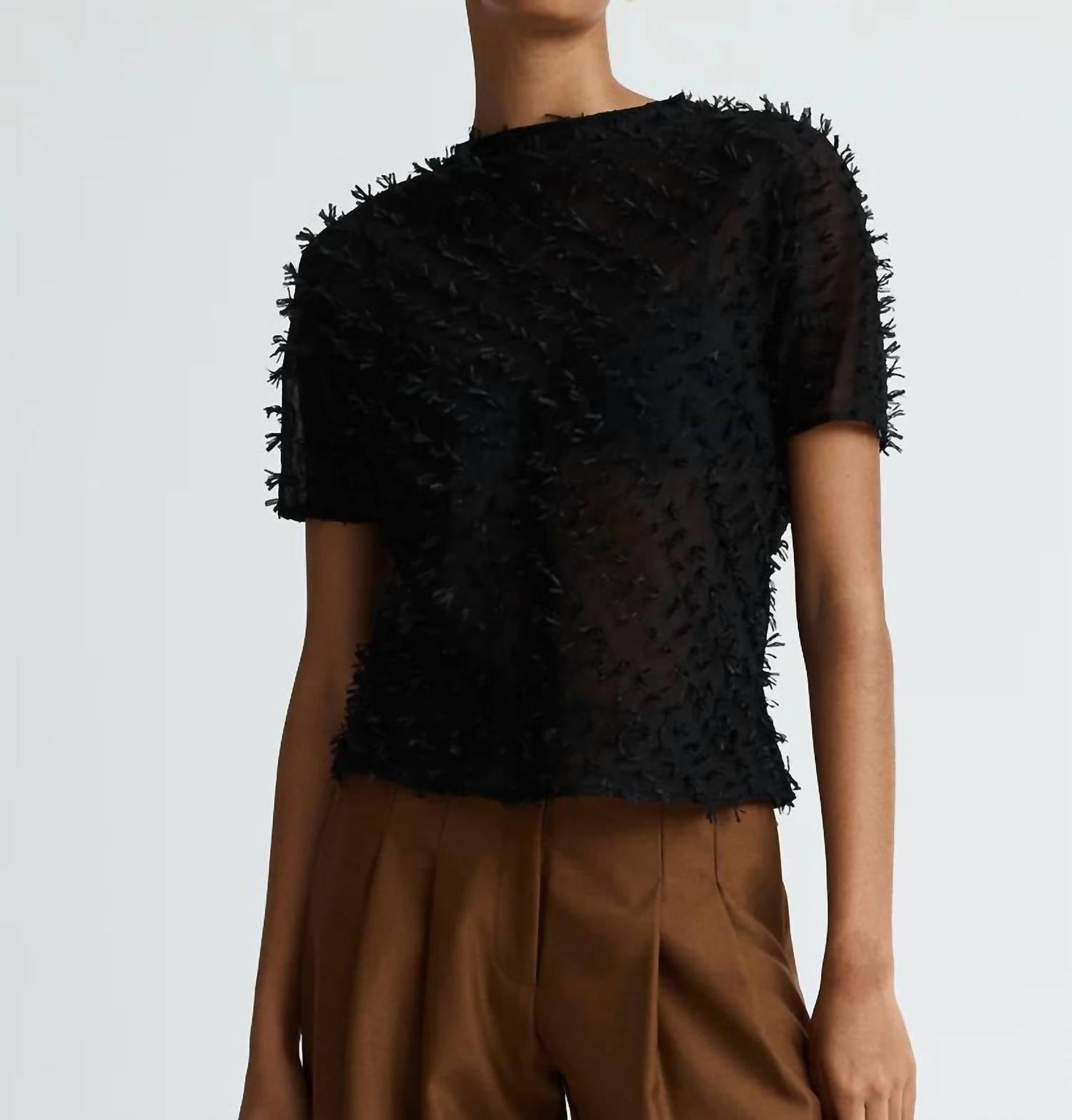Look no further, you just found your perfect tee! Introducing the Coco Short Sleeve Top by ANNA QUAN, a stylish choice for those seeking a minimalist, textured look. This top features short sleeves and a funnel neckline, crafted from a delicate Ribbon Woven Fabric in Clipped Jacquard. Composition: 50% Nylon, 50% Tencel. Closure: Pull-on style. Care: Machine wash and line dry. This piece offers a slightly sheer and breezy charm, perfect for vacation occasions.