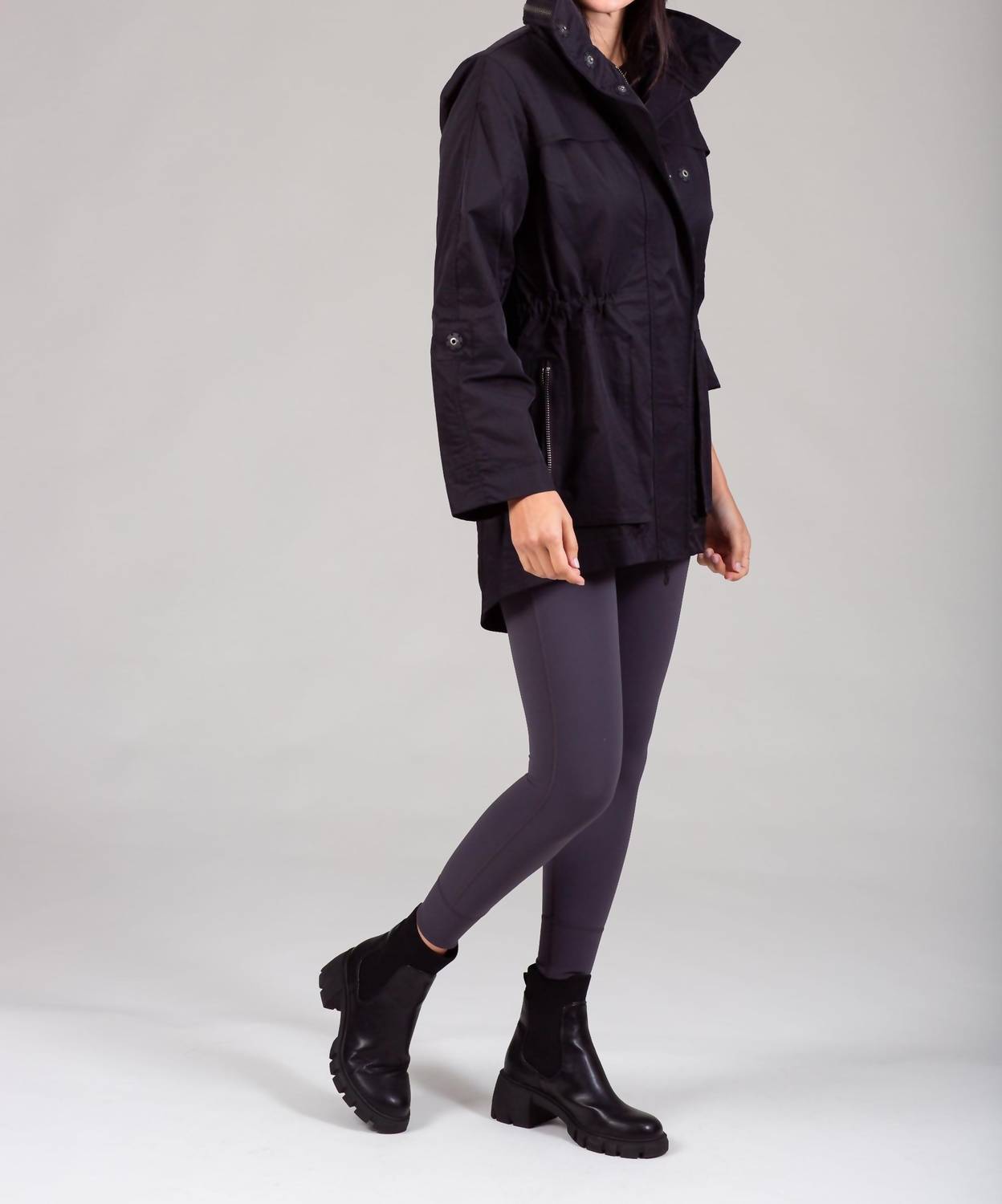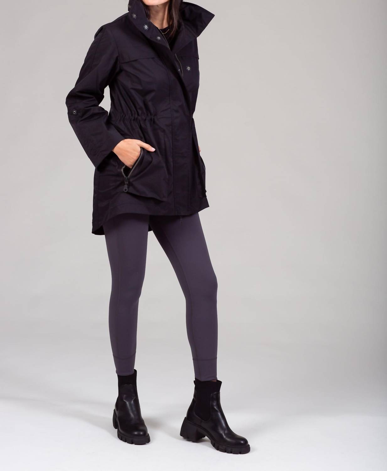 Cute, casual, and comfortable. This jacket is a must have. Introducing the Crinkle Rain Jacket by ANORAK, a solid black essential for any winter wardrobe. This long sleeve, casually chic jacket features a collar and a zip closure, with the added functionality of roll-up sleeves secured by snaps. Crafted from a nylon blend, it boasts a fully lined interior, hidden hood, and zip-close bellow pockets. Durable and practical, it's machine washable and tumble dry-friendly, making it ideal for travel and minimalist style during the Christmas season.