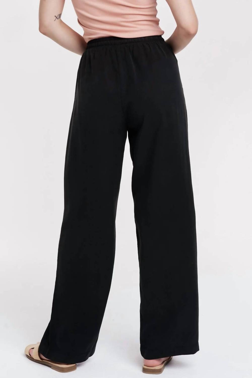 Elevate your wardrobe with the Zahara Wide Leg Pants by Another Love, the epitome of quiet luxury in sleek black. These high-rise pants feature a relaxed fit and wide-leg style, designed for ultimate comfort and style. With a convenient pull-on closure, they include pockets for functionality, making them perfect for a vacation outing. Care instructions specify hand washing and line drying, ensuring these pants remain a timeless staple for your fall wardrobe.