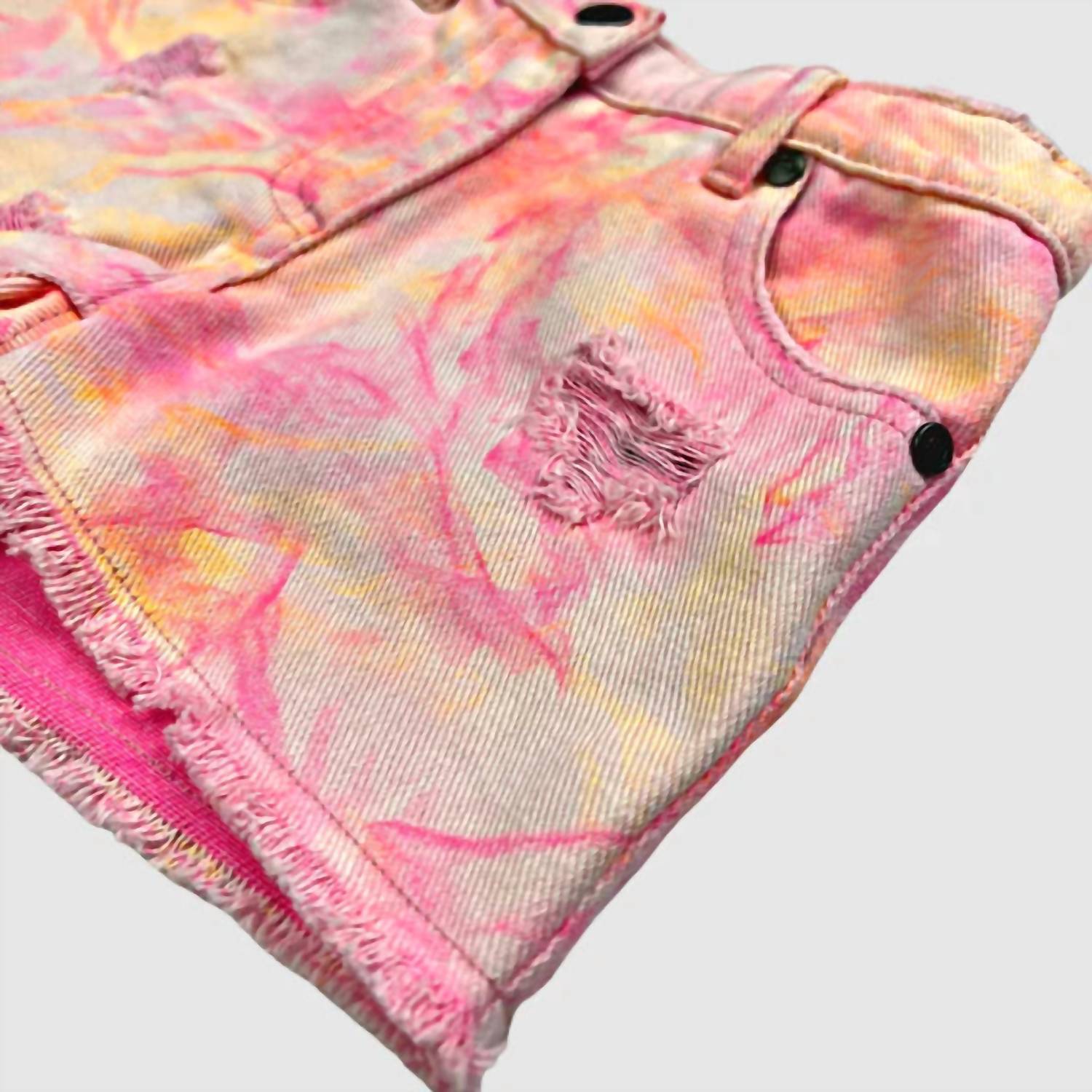 Get ready for summer adventures with the Appaman Rhodes Rainbow Shorts in vibrant Neon Lights. These relaxed fit shorts feature a longer inseam for ultimate comfort, perfect for a vacation-ready look. Made from distressed denim with rainbow colored cross thread, these shorts showcase a unique patterned design where color subtly peeks through. Care is simple with machine wash instructions, making them an easy addition to any maximalist wardrobe.