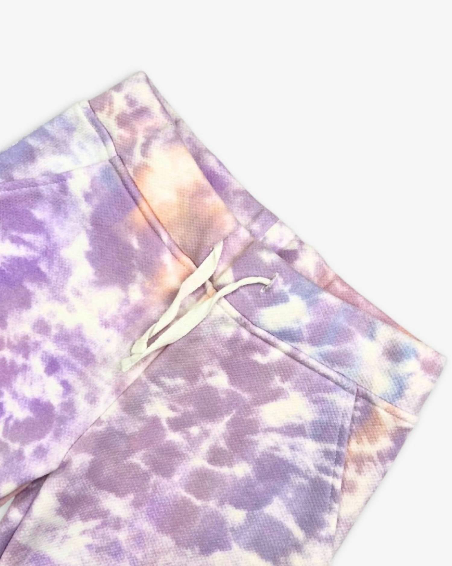 Introducing the Stanton Tie Dye Jogger by Appaman, a fun and vibrant choice for your little girl's spring wardrobe. These jogger sweatpants feature a playful tie-dye pattern in Wild Orchid, complete with an elastic pull-on waistband with a drawstring and angled slit pocket detail on the hip. The tapered leg design is finished with an elastic banded bottom hem for a snug fit.
