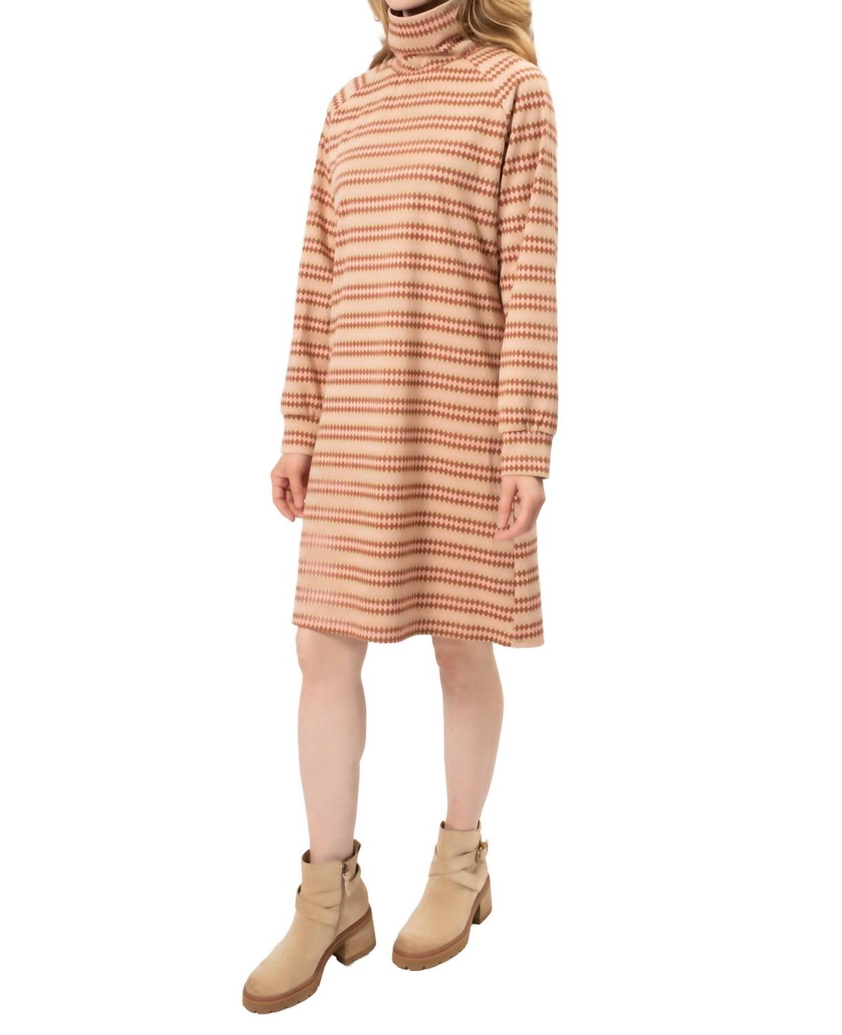 Just add slides or mules and you are good to go. Introducing the Alice Dress by Area Stars, a chic midi piece perfect for elevating your wardrobe. This stylish dress features a classic stripe pattern and a sophisticated turtleneck that complements its long sleeves. Crafted in a versatile shift silhouette, it is designed for women seeking effortless elegance. Closure: Pull on.