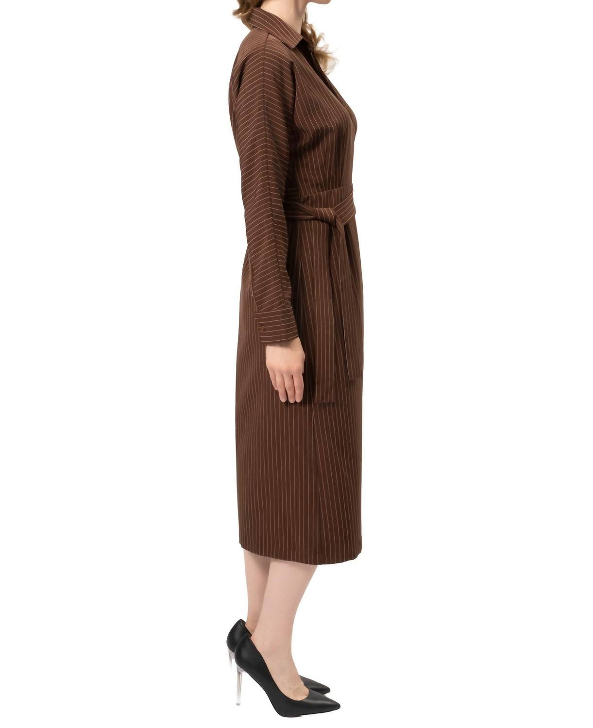 Just add slides or mules and you are good to go. Elevate your spring wardrobe with the Cass Dress by Area Stars, a textured brown midi dress designed for women. This stylish wrap dress features long sleeves and a chic collar neckline, perfect for a polished look. Closure: Tie closure. Embrace effortless elegance with this elegant piece.
