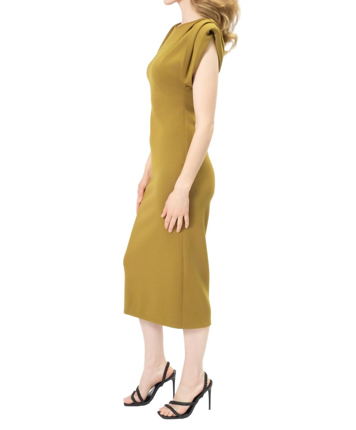 A midi dress so versatile, your options for wearing it are endless. Elevate your holiday party wardrobe with the Jera Dress by Area Stars, a stunning shift silhouette in a rich olive hue. This midi dress features cap sleeves and a classic crewneck, perfect for spring occasions. Closure: Zip closure. Pattern: Solid.