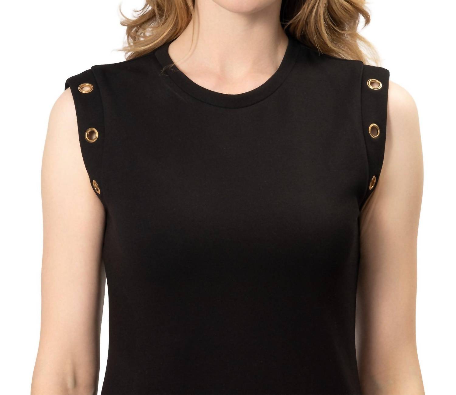 The perfect length dress does exist. Elevate your holiday party look with the Yoki Dress by Area Stars, a chic addition to any woman's wardrobe. This sleek black sheath dress is sleeveless and sports a flattering crewneck silhouette. Its midi length makes it perfect for spring events. Designed without pockets, care instructions are not specified for this solid-patterned dress.