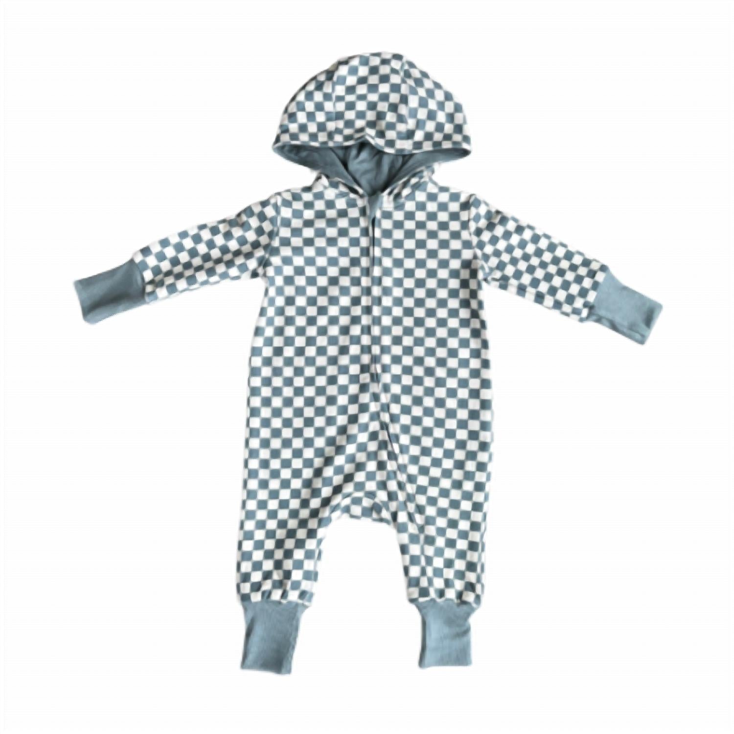 Introducing the Boy's Zip Romper from Babysprouts, a stylish piece in Storm Checker plaid perfect for fall adventures. Crafted from a blend of 66% bamboo, 28% cotton, and 5% spandex, this romper is soft, breathable, and gentle against the skin, ensuring comfort throughout the day. The practical zipper closure allows for easy dressing and quick diaper changes, making it ideal for busy parents. Embrace the vintage trend with this romper, designed in the USA with custom patterns exclusive to Babysprouts Clothing Company.