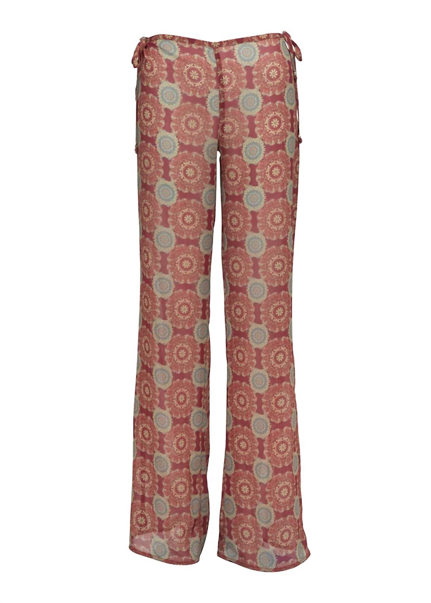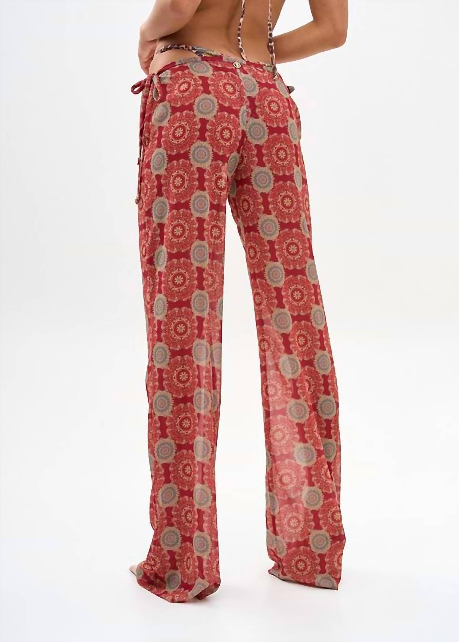 Introducing the GRACE Wide-leg Pants by Bananhot, designed to elevate your summer style in the vibrant PARADISE PASSION color. These patterned pants feature a low-rise V-shaped waist, wide-leg style, and relaxed fit, making them perfect for throwing over your bikini. Crafted from 83% poly and 17% elastane, they offer a sheer and boho chic look, ideal for travel and holidays. Closure type: Pull-on. Care: Hand wash.