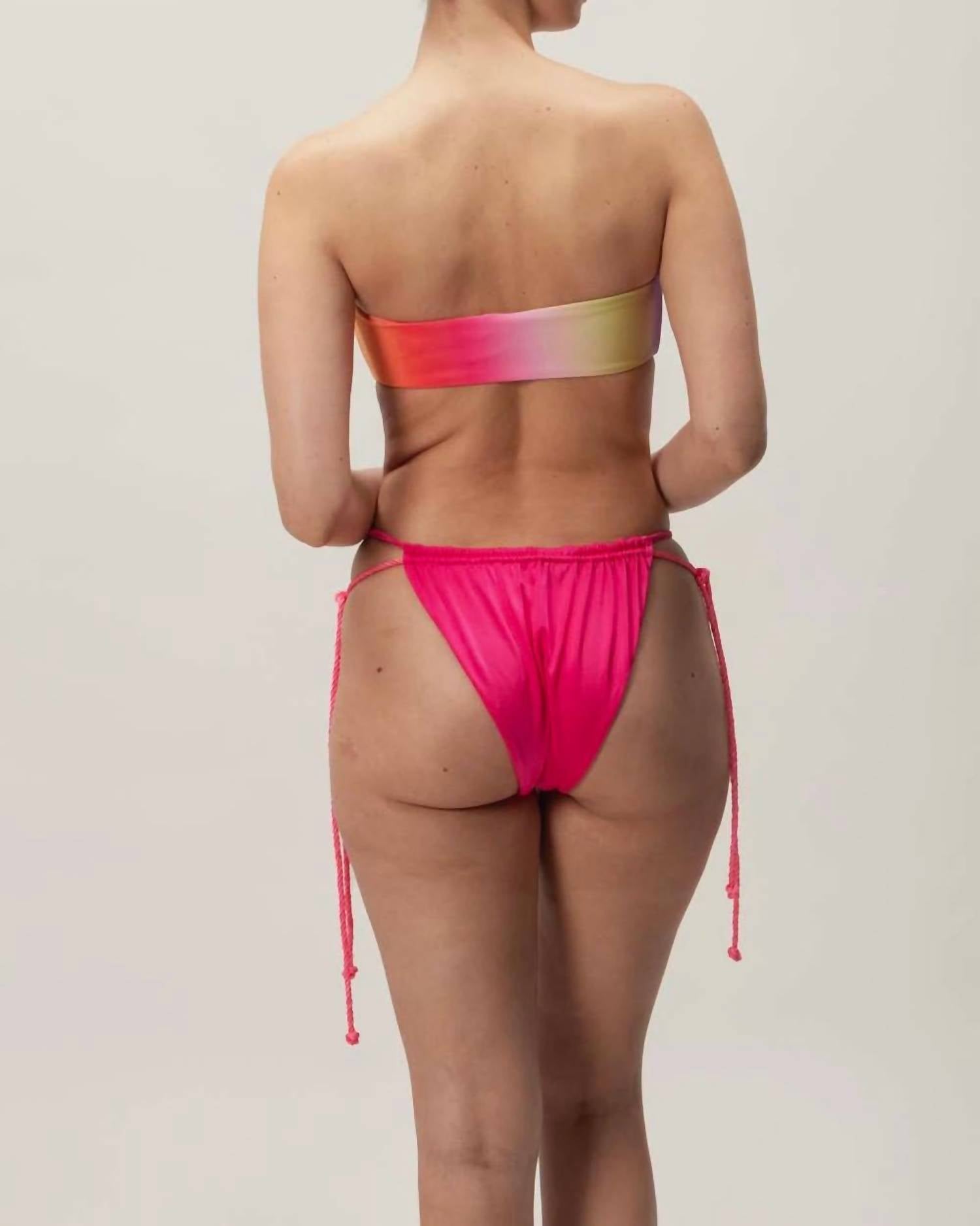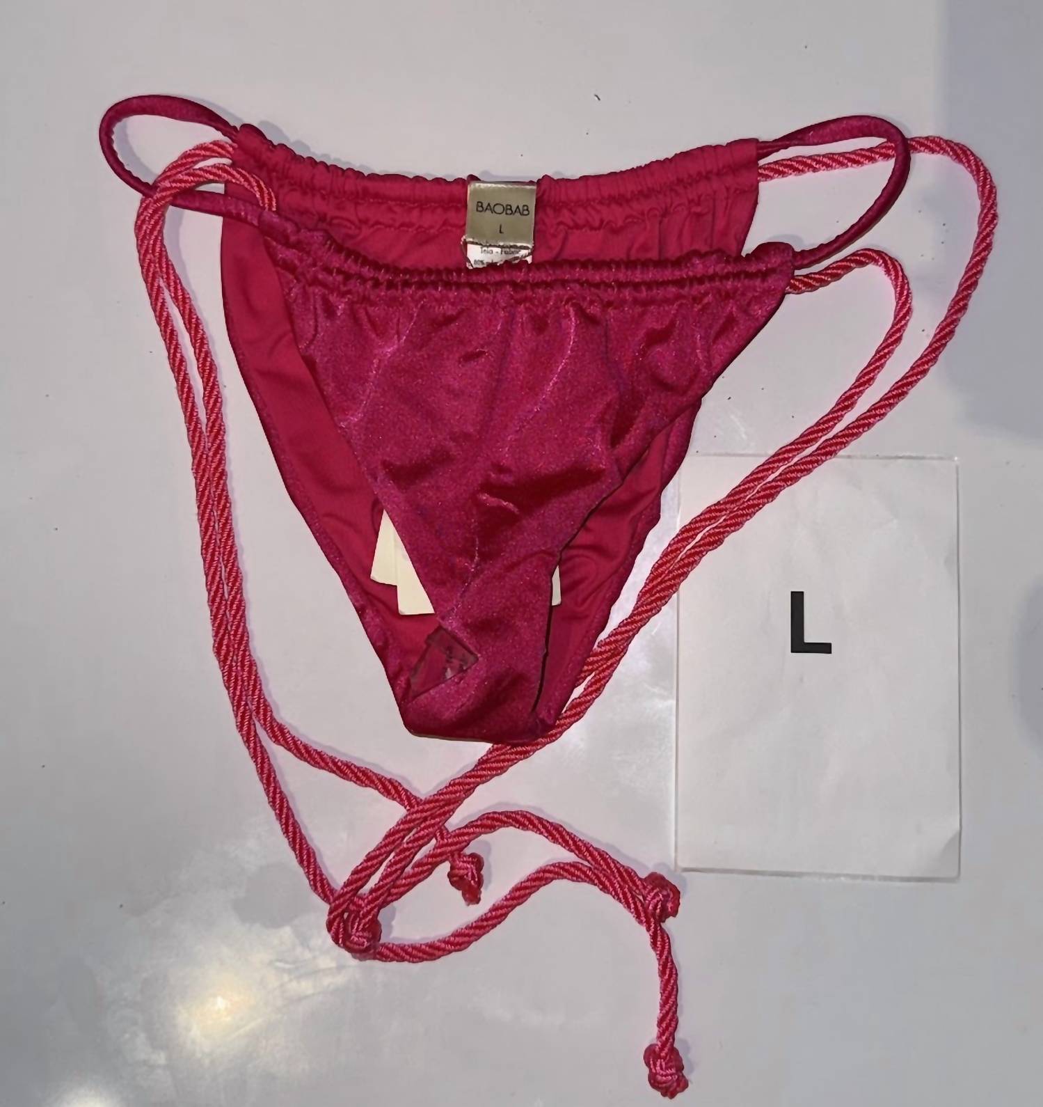 This cute and flattering swimsuit is perfect for making a splash at the pool, lounging on sun-kissed beaches, and staying stylish throughout the upcoming summer season. Elevate your beach style with the Ancla Bikini Bottom by BAOBAB in a vibrant pink hue, perfect for your summer escape. Designed with a low rise, this swim bottom features a high-cut silhouette and adjustable side tie straps with ruched details for a flattering fit. Crafted from a sustainable, figure-hugging blend of 80% Nylon and 20% Elastane in a glossy Lycra fabric, it combines style with sustainability. Care for your swimwear by hand washing and laying it flat to dry for longevity.