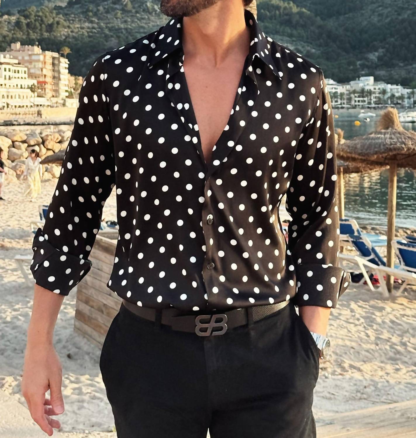 Elevate your wardrobe with the BARABAS Delhi Polka Dots Long Sleeve Shirt in timeless black. This men's shirt from the premium Barabas collection features a sophisticated polka dot design and a luxurious silk-like feel, crafted from 100% polyester. Designed with a classic collar and button closure, it's the perfect fusion of luxury and contemporary style. Care instructions recommend dry cleaning and avoiding bleach to keep this staple piece looking its best.