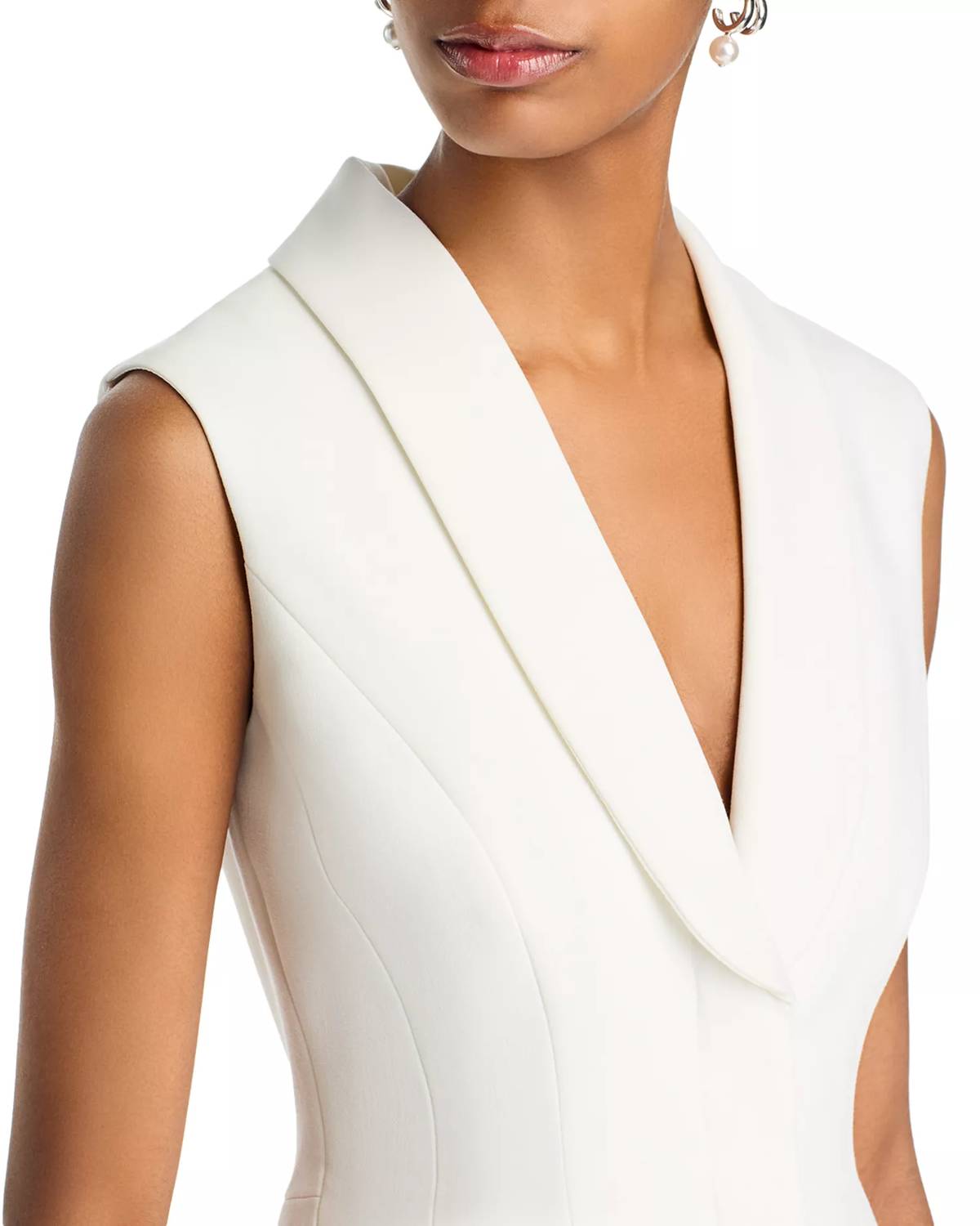 A short and breezy dress for those warmer days. Experience modern minimalism with the Destene Hourglass Tailored Mini Dress by Bardot in a pristine white hue. This sleeveless A-line dress features a deep V-neckline with a pronounced collar and a balloon style skirt, perfectly balancing elegance with playfulness. Crafted with 65% Polyester, 30% Viscose, and 5% Elastane, it offers a structured fit, while a side zipper ensures easy wearability. Measuring approximately 32.5" from shoulder to hem in size small, this fully lined piece is ideal for summer evening events, and should be hand washed to maintain its condition.