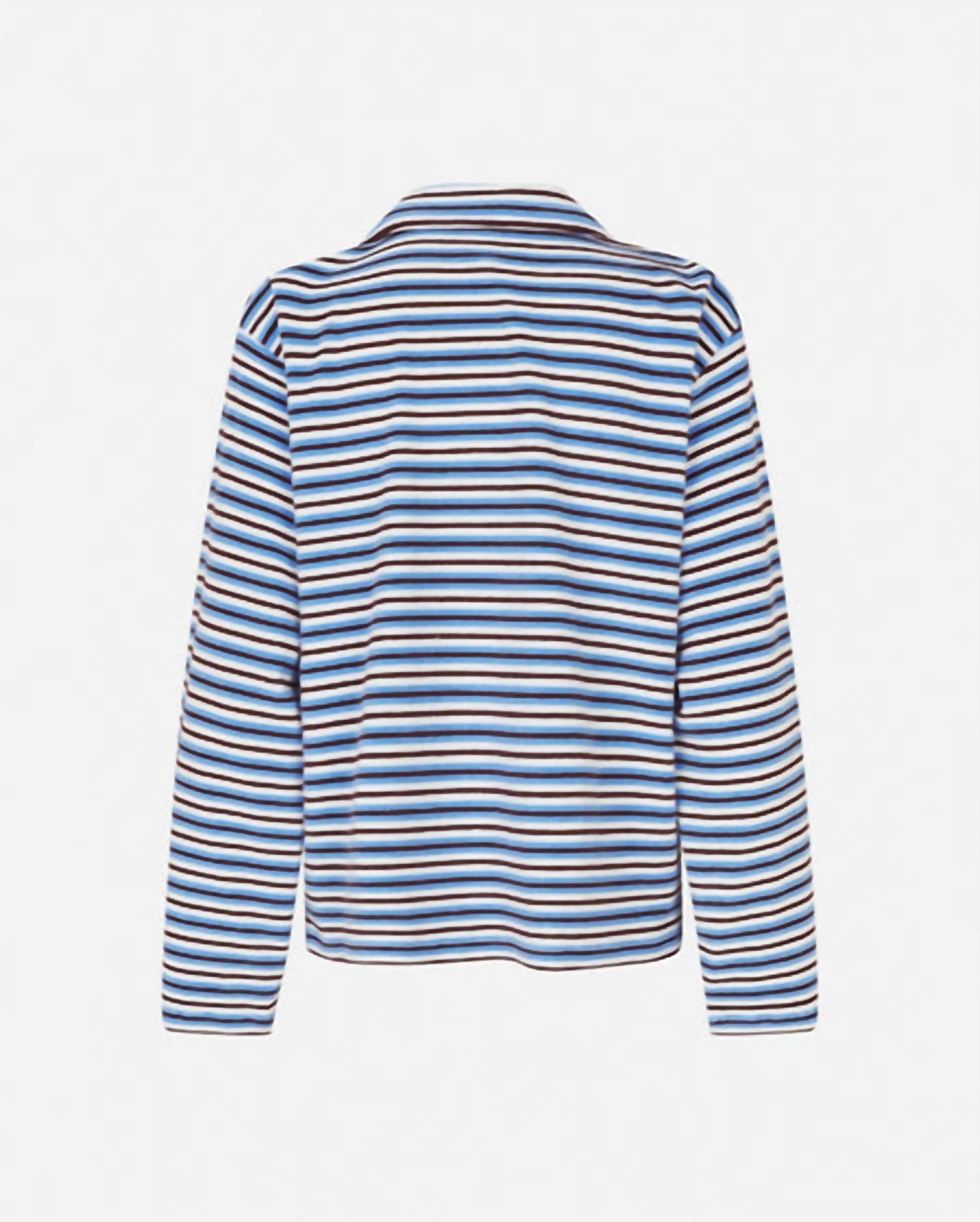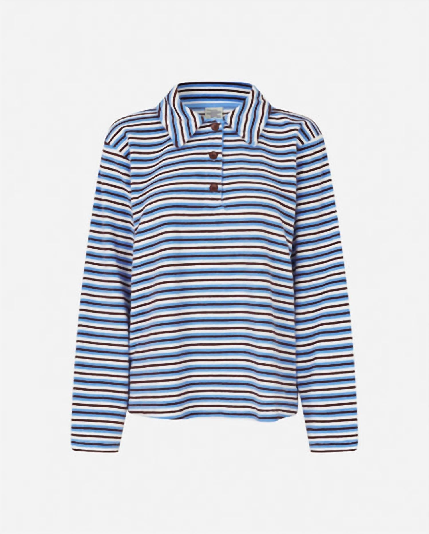 Great fit, cute design, soft fabric. You'll love everything about this long sleeve tee. Introducing the Jivan Top by BAUM UND PFERDGARTEN, an elegant choice for your holiday party wardrobe. This stylish piece features long sleeves and a classic collar, beautifully adorned with a timeless Wedgewood Stripe pattern. Closure: Button closure. Designed for women and perfect for spring, this top effortlessly combines sophistication and comfort.