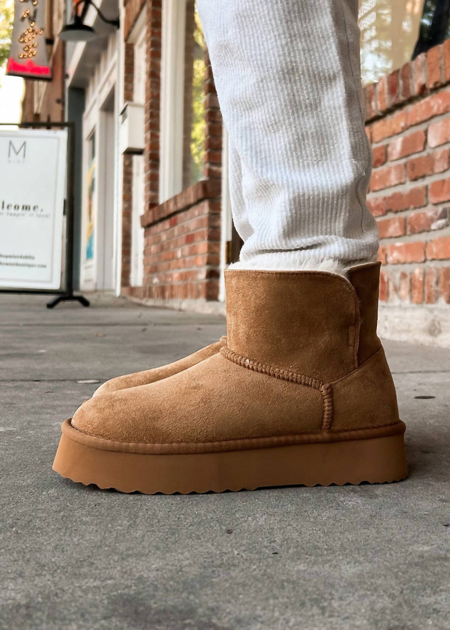 Say hello to the perfect, most versatile boot. The ankle height makes this style easily transition from day to night. Wear them with your favorite skinny jeans and tee for a more laid back look, or pair them with your favorite mini dress and jacket for a night out on the town. These ankle boots are designed for easy, everyday wear with a synthetic suede upper and convenient slip-on style. A platform sole and subtle chain detail add a touch of casual-chic flair, making them perfect for running errands, quick outings, or casual lunches. True to size and available in whole sizes, they’re your versatile go-to shoe for effortless style.