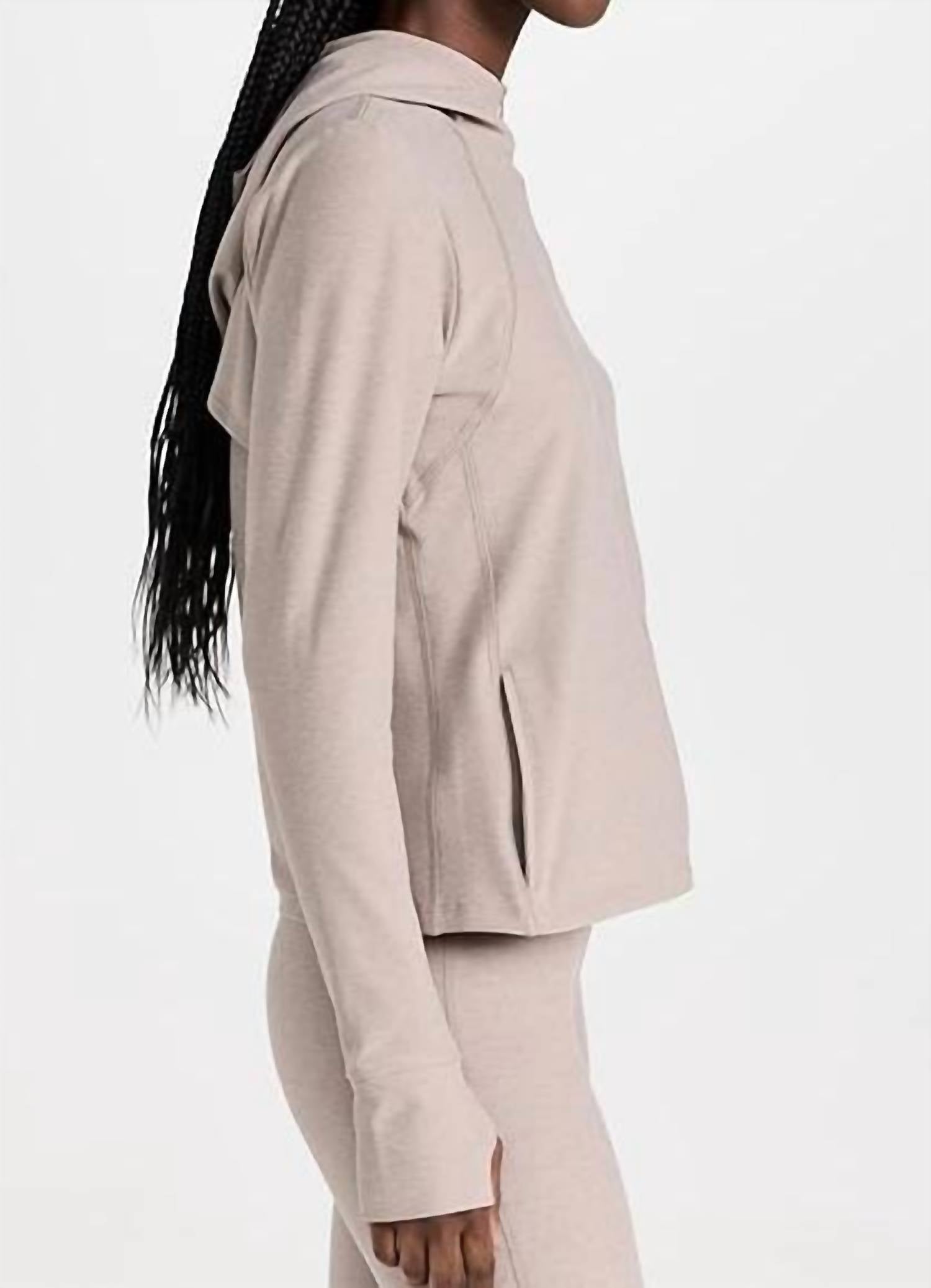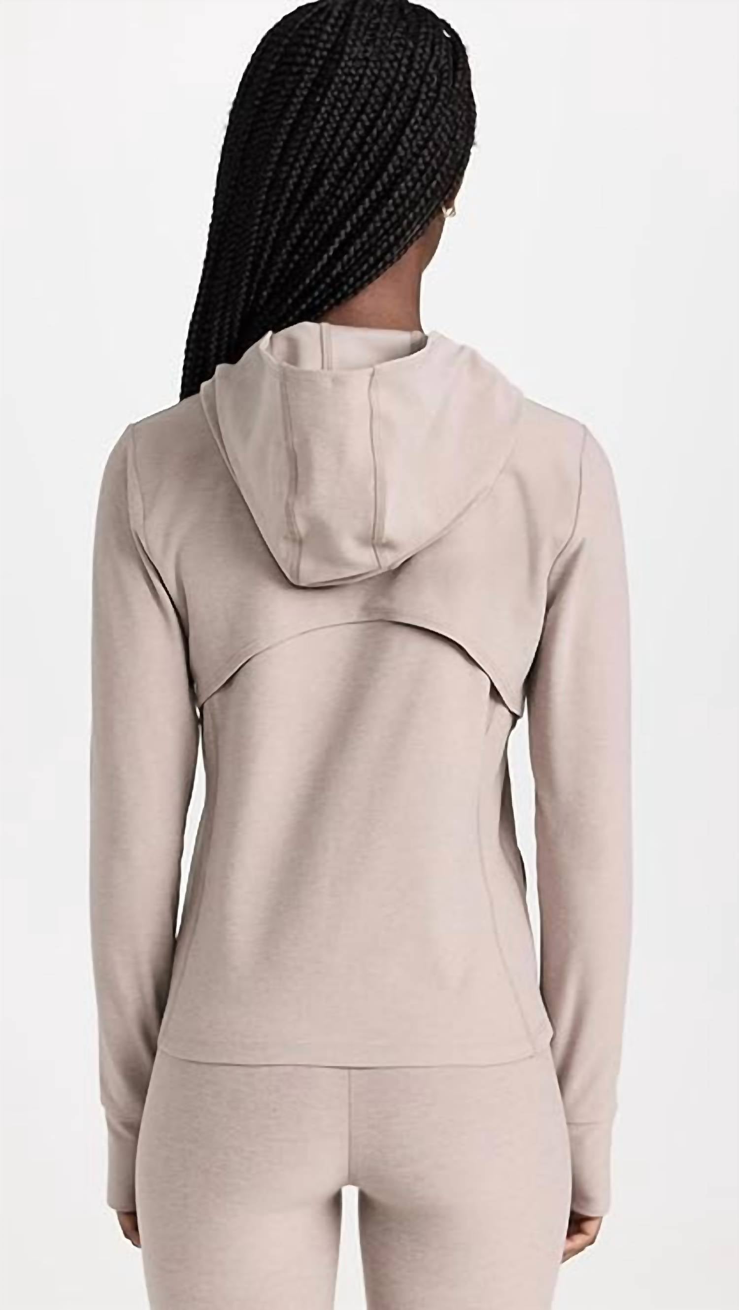 Cozy fabric, impeccable design - Meet the sweatshirt that you'll never want to take off. Enhance your workout wardrobe with the Spacedye High Energy Hoodie by BEYOND YOGA, crafted in a sleek Birch hue. This hooded activewear piece features long sleeves with practical thumbholes and a unique back mesh vent for optimal breathability. Composition: 87% Polyester, 13% Elastane. Designed in the USA with a zip closure, this women's hoodie boasts side pockets. Care: Hand wash for best results.