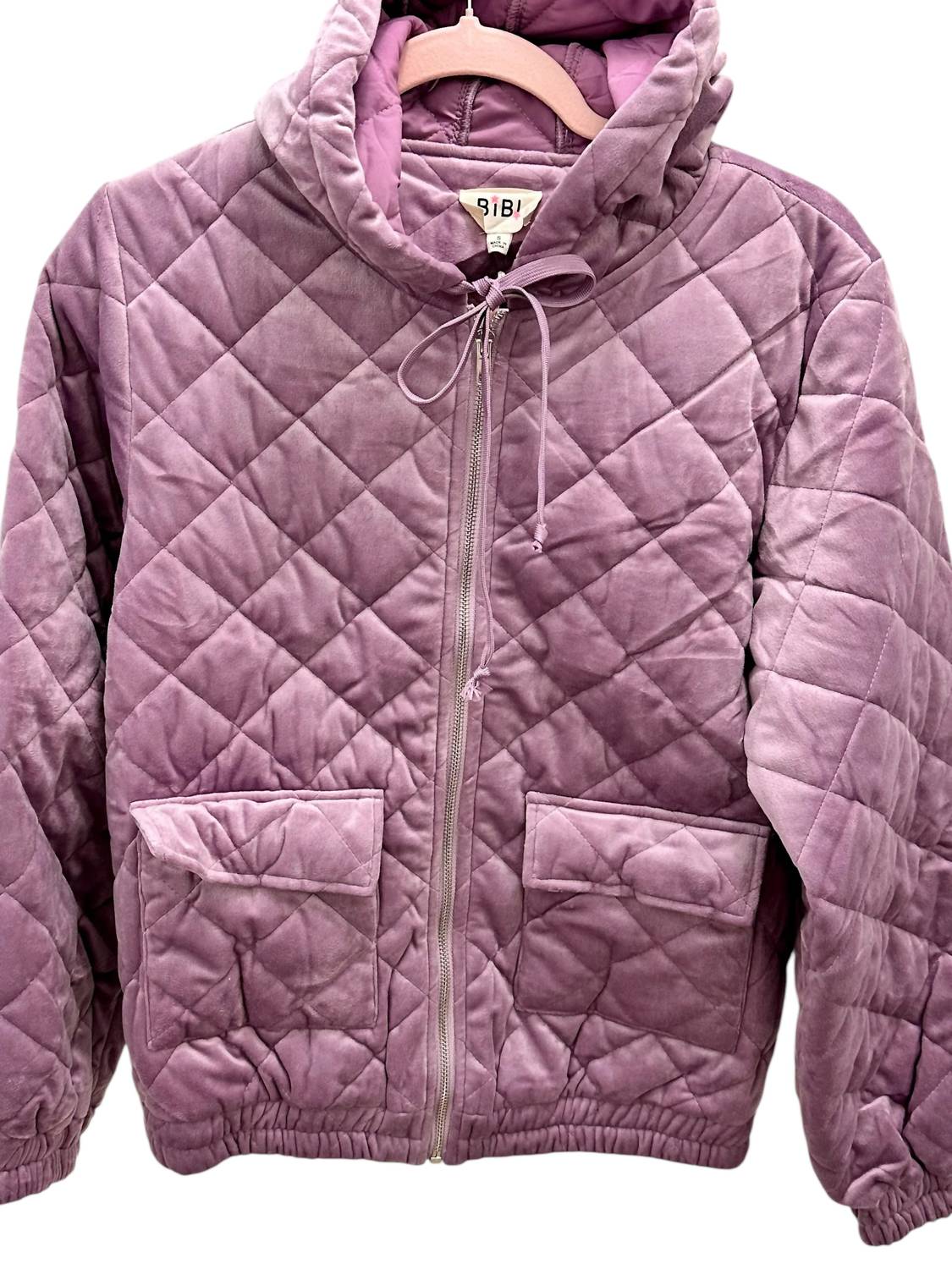 Cooler temps call for layering and we love this adorable sweatshirt for all the obvious reasons. Introducing the Women's Quilted Velvet Hood Jacket by BiBi, a luxurious addition to your fall and winter wardrobe in a calming lavender shade. This long-sleeve jacket features a plush velvet material with a chic textured pattern, making it both warm and effortlessly stylish. Designed with practicality in mind, it includes convenient pockets and a zip closure. Perfect for layering on cooler days, it's a minimalist piece that will elevate your style for any dinner party occasion.
