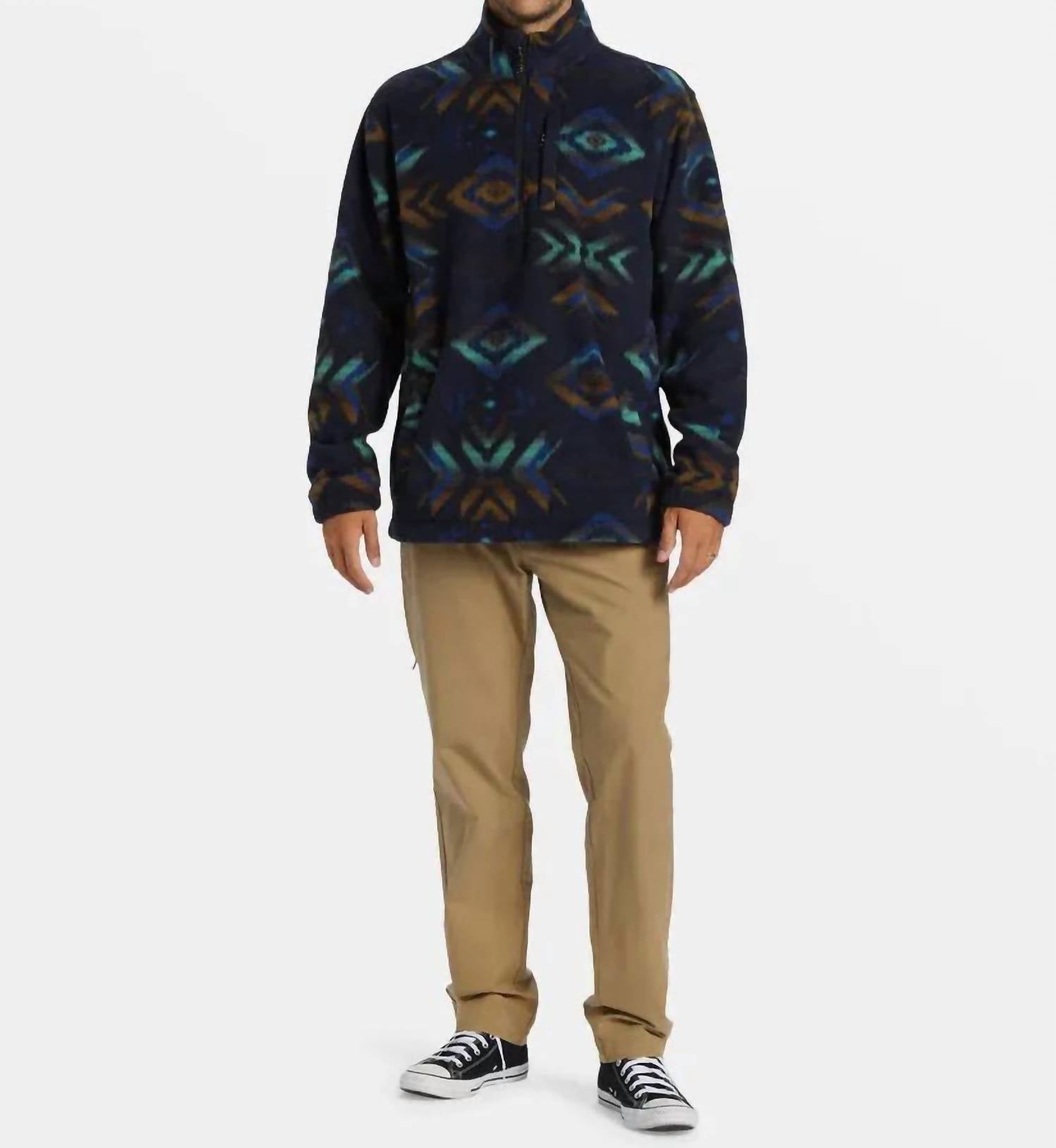 Elevate your outdoor wardrobe with the Boundary Mock Neck Fleece Jacket by Billabong, part of their Adventure Division collection. This minimalist piece features long sleeves and is constructed from a 70% recycled polyester, 30% polyester blend polar fleece, assuring warmth with its 300g/m² weight. Designed for men in a solid navy color, it includes practical details such as zippered chest and kangaroo pouch pockets, along with an elastic bungee cinch closure at the waistband. Care is simple with machine wash and tumble dry instructions, making it ideal for your fall hiking adventures.