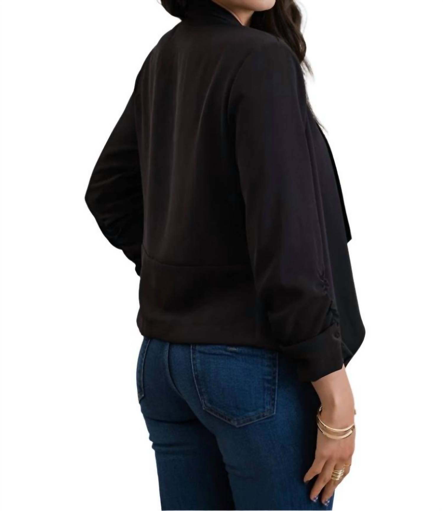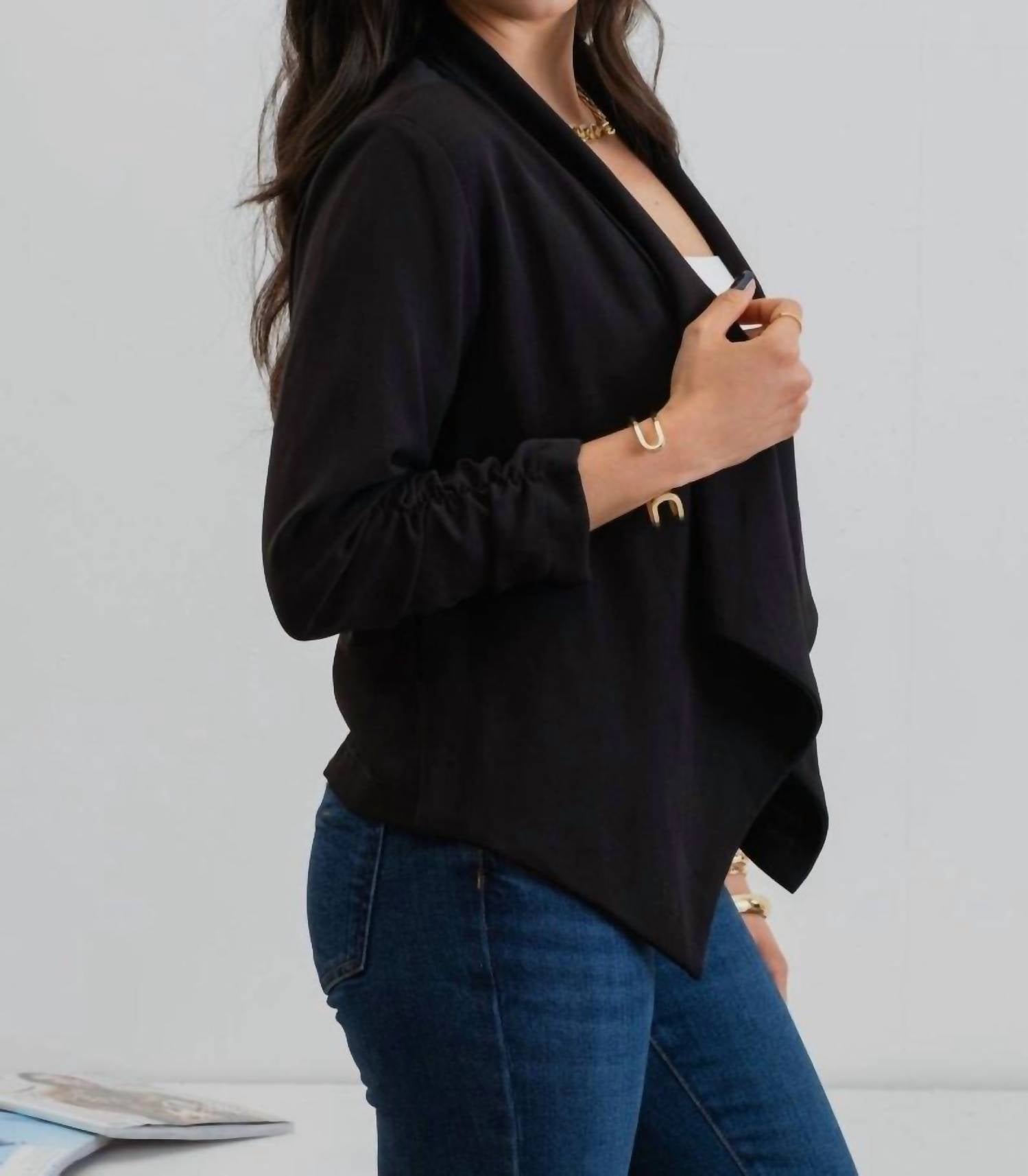 Blu Pepper - Women's Rouched Three Quarter Open Front Blazer