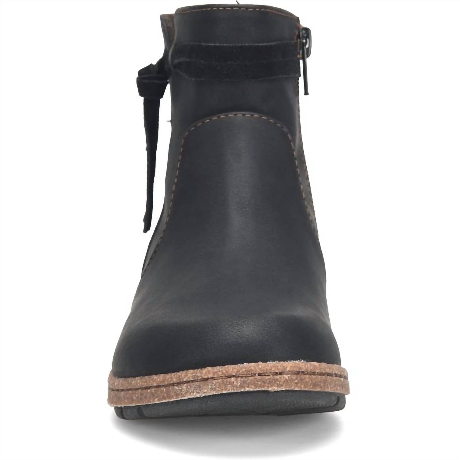 Say hello to the perfect, most versatile boot. The ankle height makes this style easily transition from day to night. Wear them with your favorite skinny jeans and tee for a more laid back look, or pair them with your favorite mini dress and jacket for a night out on the town. Step into effortless style with the Women's Addi by BOC, perfect for any vacation wardrobe. These black ankle boots feature a chic round toe and a low flat heel height ranging from 1 1/4" to 2", ideal for comfortable wear. The monochrome design makes it a versatile choice for the spring season. Crafted with quality materials, this footwear piece ensures a fashionable and laid-back look for women.